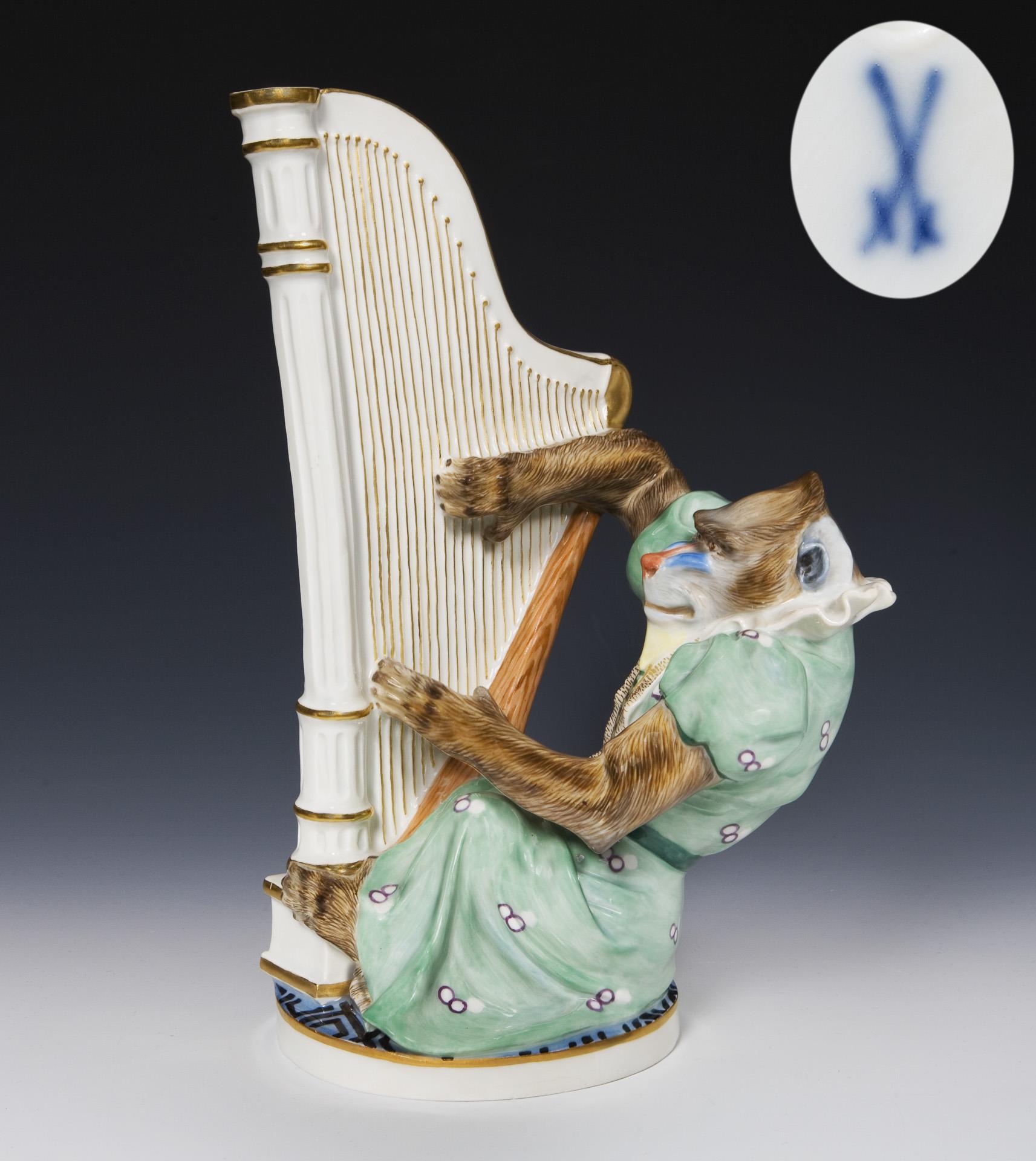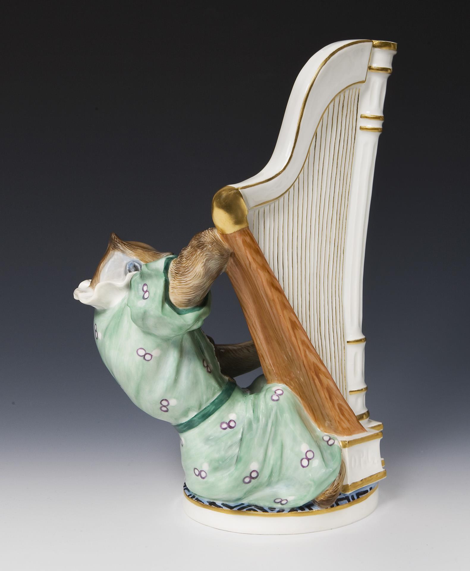 Figur der Affenkapelle: Mandrill als Harfenspieler. Meissen.