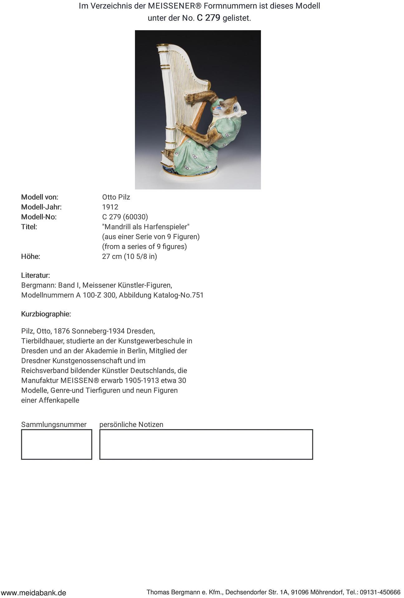 Pilz, Tierbildhauer, studierte an der Akademie in Berlin. Die Manufaktur Meissen erwarb 1905-1913 etwa 30 Modelle. Meissen-Manufaktur-Preis: 8490,- Euro * Partnerauktion Bergmann.