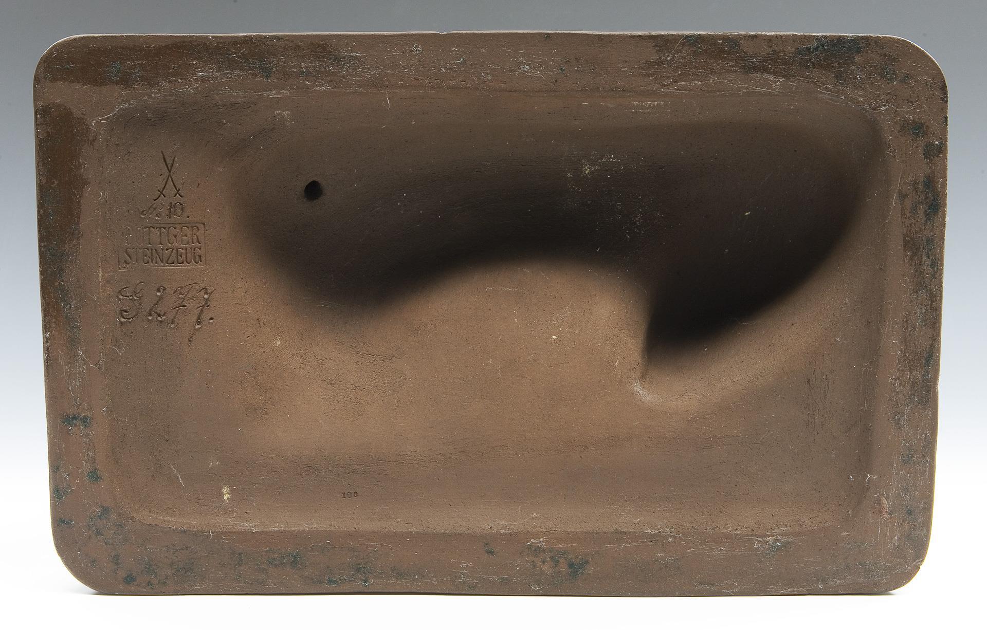 Modell-Jahr: 1922, Böttgersteinzeug, Ritzmarken, Pressmarken, Künstler-Signet. Rückseitig Sockelrand bestoßen.