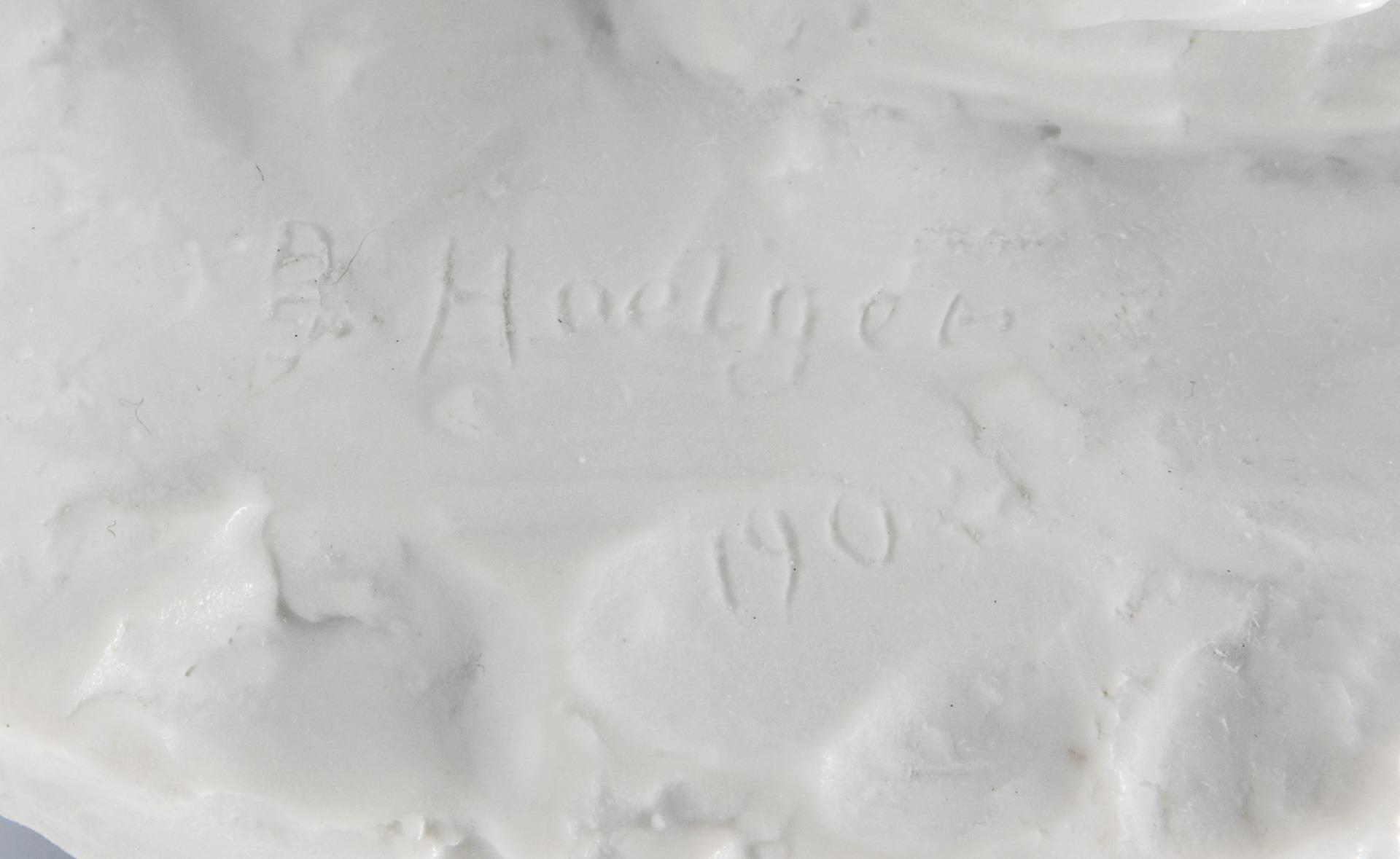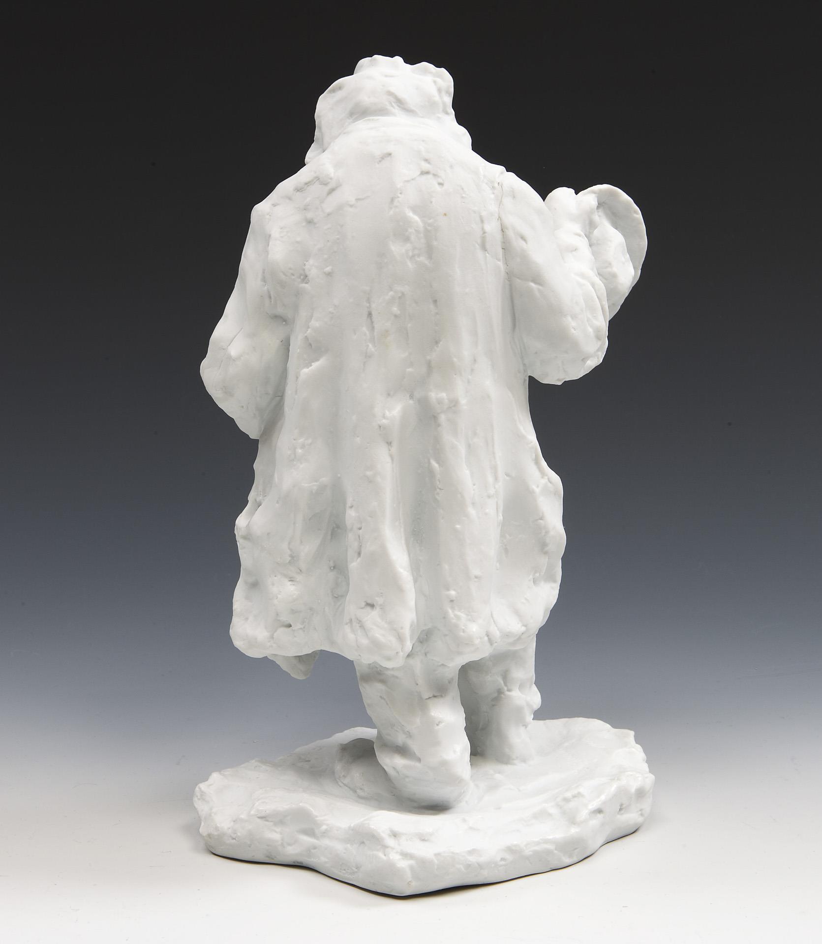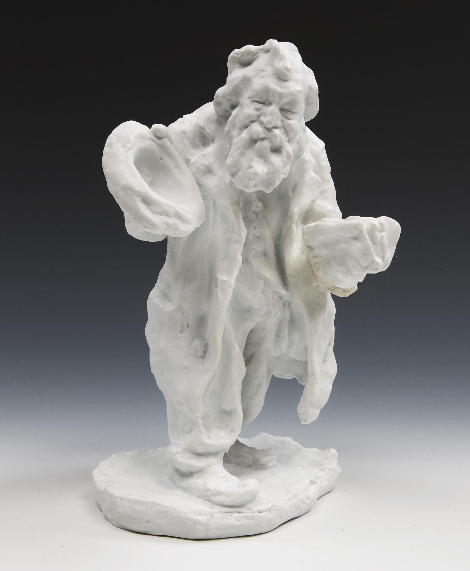 Modell-Jahr: 1902, Pendant zu Modell-Nr. T 163 "Pariser Kleiderhändler". Biskuitporzellan, Ritzmarke, Pressmarken, Schwertermarke gestrichen, Künstler-Signet, datiert: 1902. Im Sockel Brandrisse.