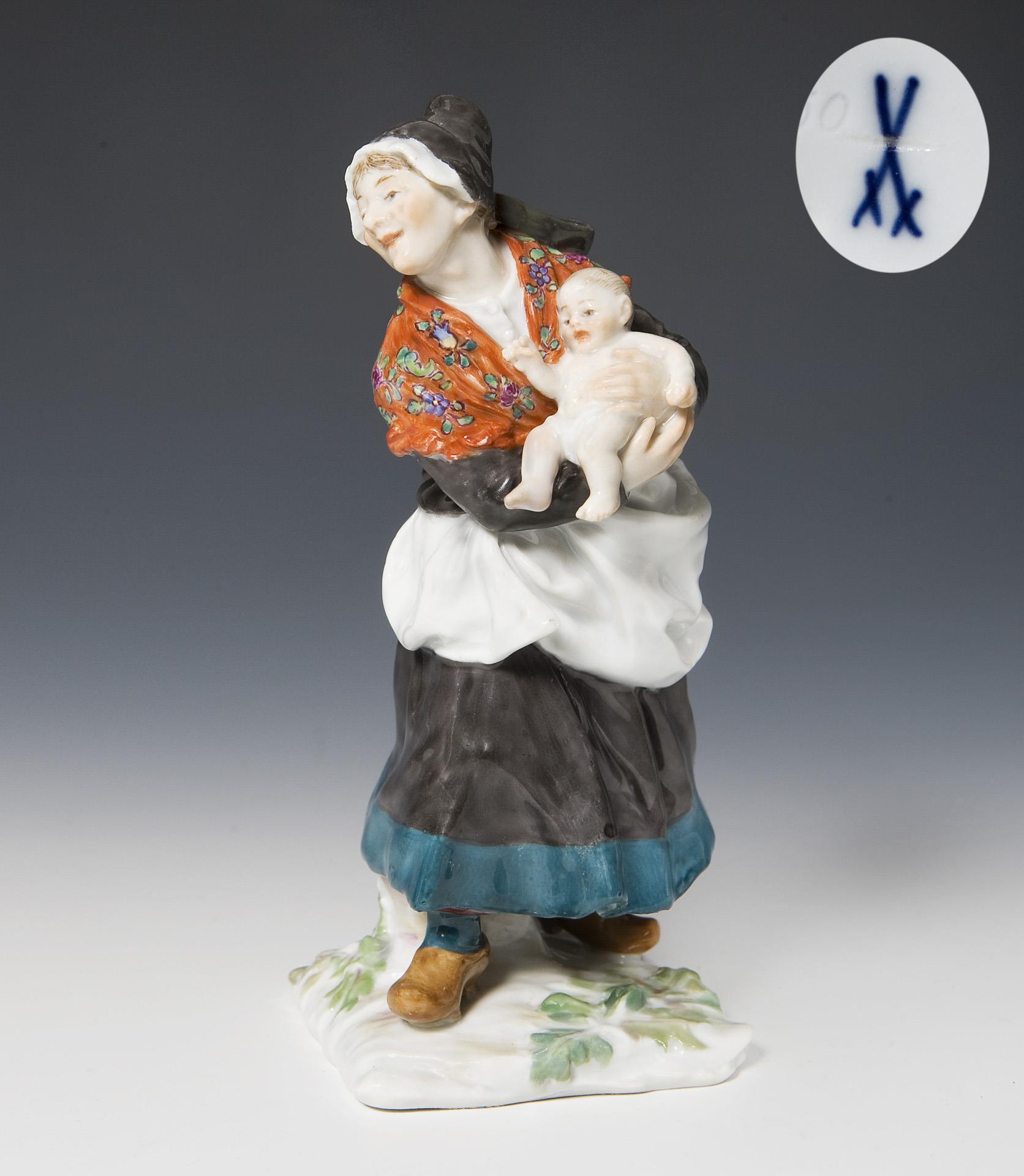 Trachtenfigur: Mönchguter Frau mit Kind. Meissen.