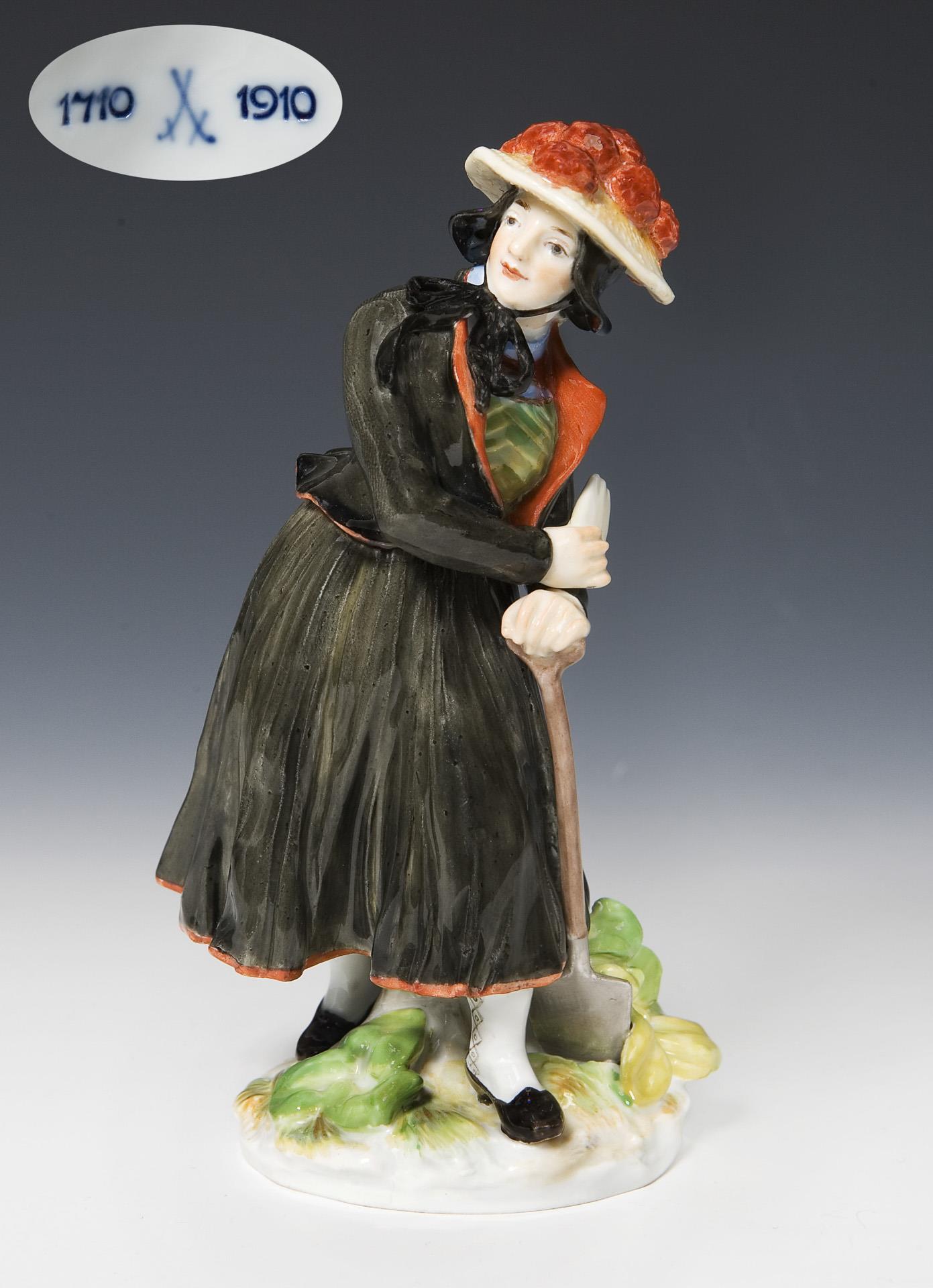 Modell-Jahr: 1897-1898, aus einer Serie von 25 Figuren. Farbig bemalt, Ritzmarke, Pressmarke, Malermarke, Schwertermarke, blaue Jubiläumsmarke 1710-1910.