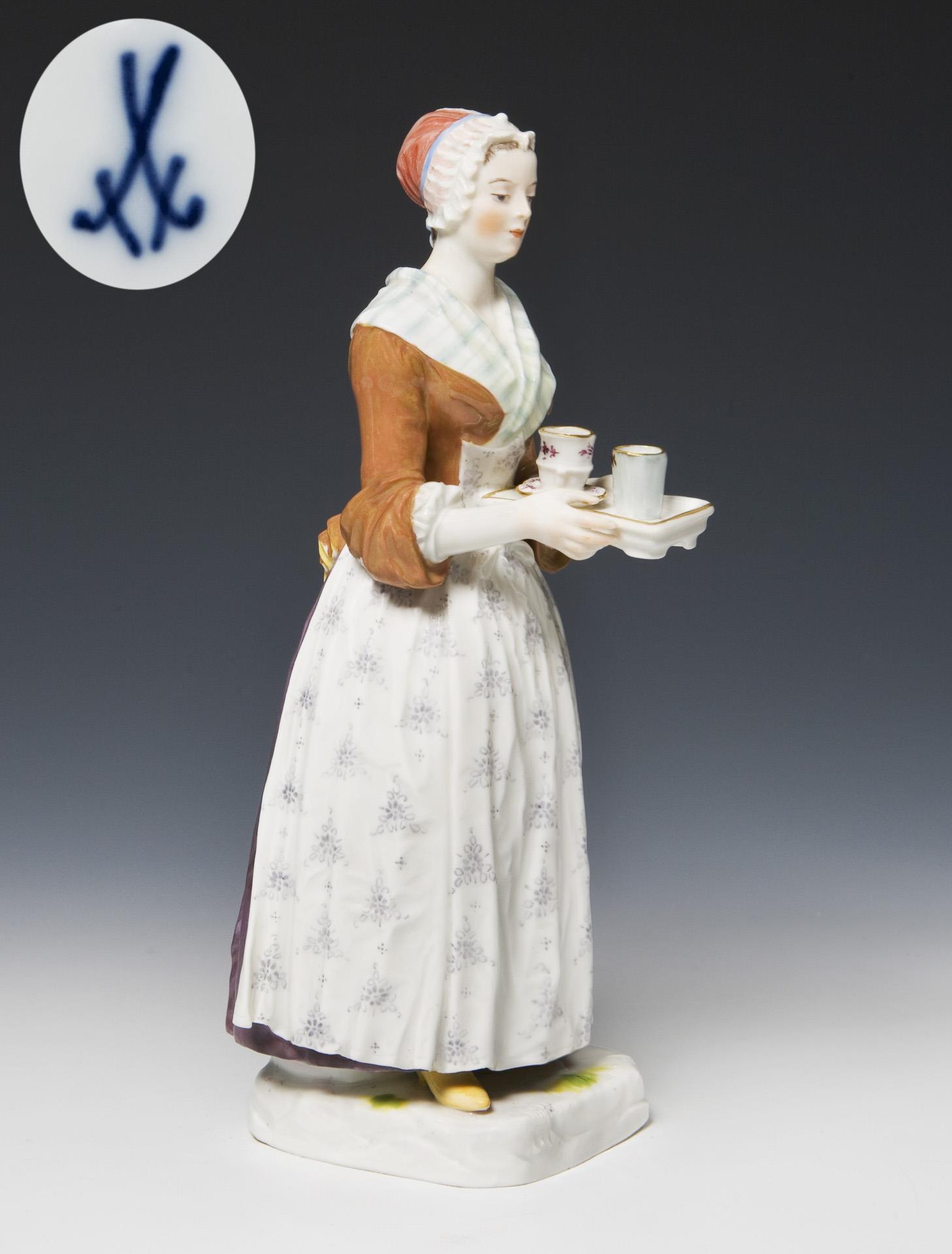 Nach dem Pastell von Jean-Etienne Liotard modelliert. Modell-Jahr: 1900-1902, farbig bemalt, gold staffiert. Pressmarken, Malermarke, Schwertermarke. Rückseitig am Ellbogen leicht bestoßen.