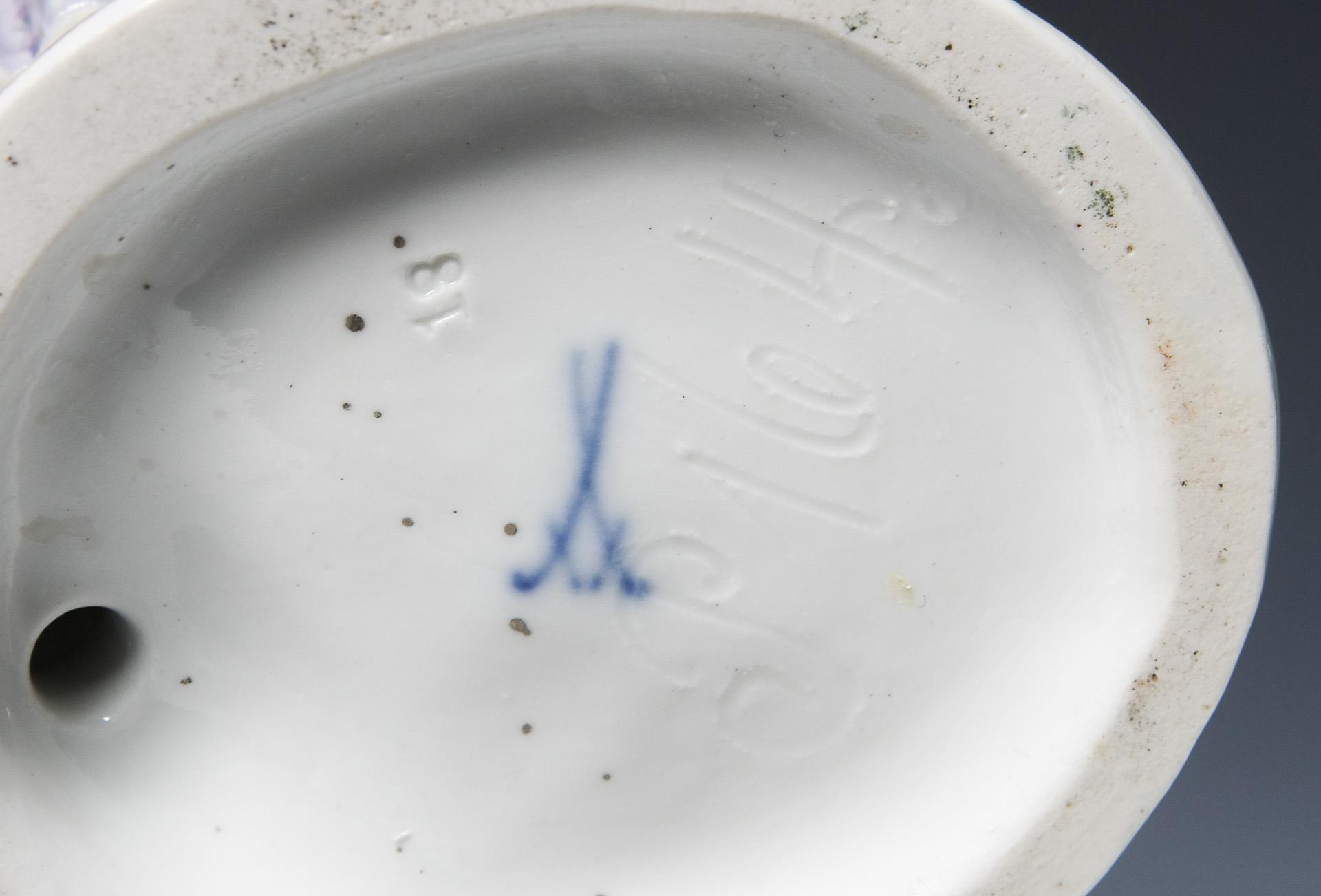 Modell-Jahr: 1895-1896, farbig bemalt, gold staffiert. Ritzmarke, Pressmarke, Malermarke, Schwertermarke. Ähren, rückseitig Blumenstrauß bestoßen, rückseitig ein Brandriss im Oberarm.