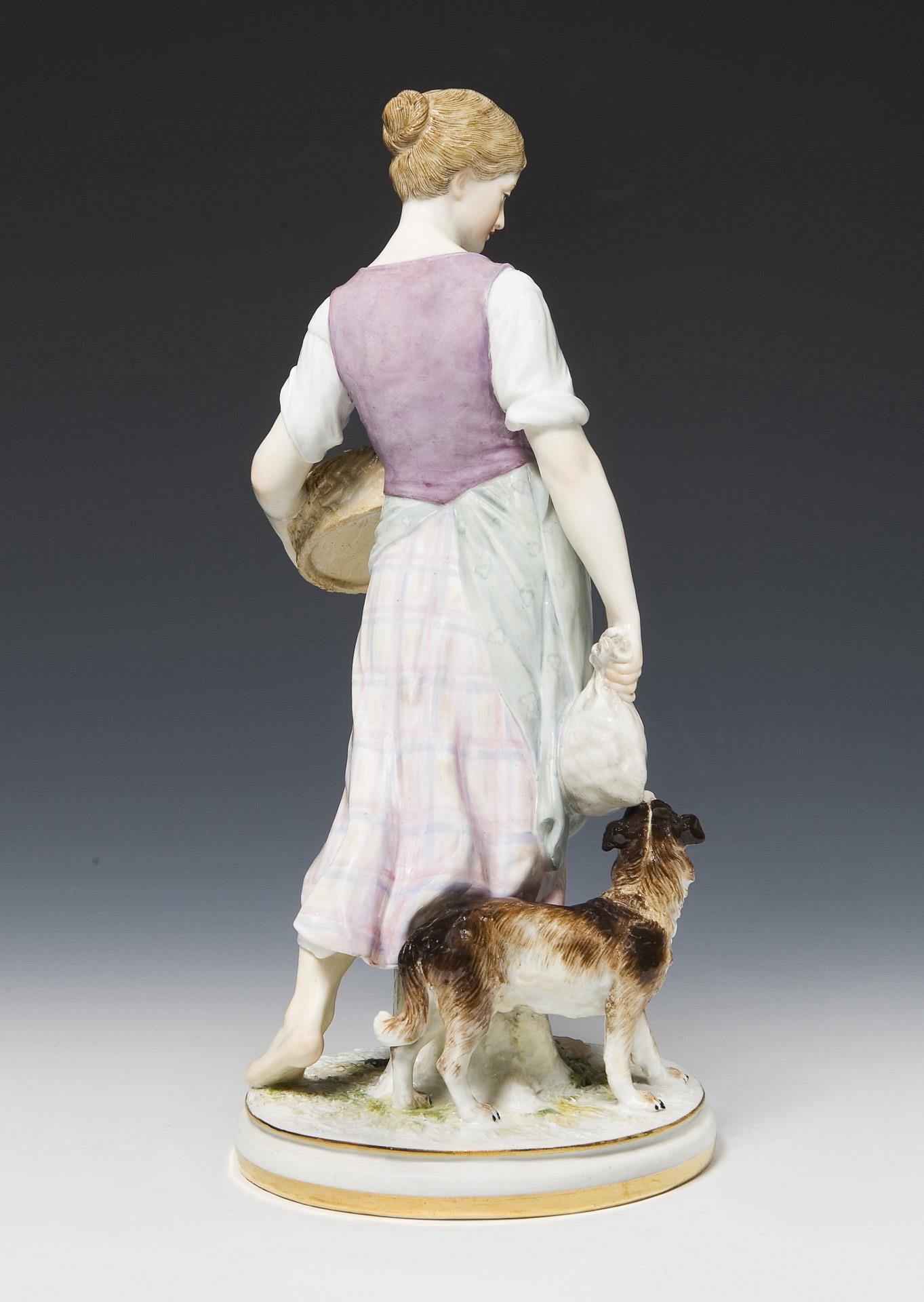 Jugendstil-Figur: Landmädchen mit Wachtelhund. Meissen.