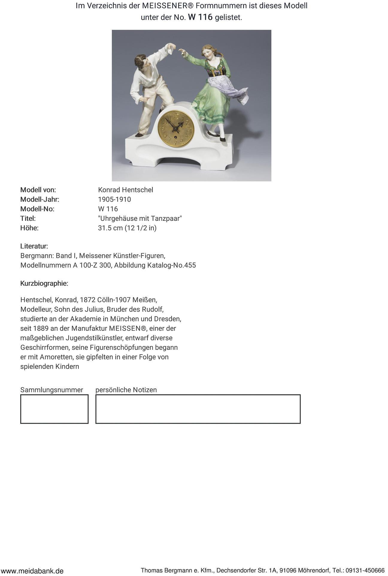 Hentschel, Modelleur, studierte an der Akademie in München. Seit 1889 an der Manufaktur, entwarf diverse Geschirrformen und Figuren. Einer der maßgeblichen Jugendstil-Künstler * Partnerauktion Bergmann.