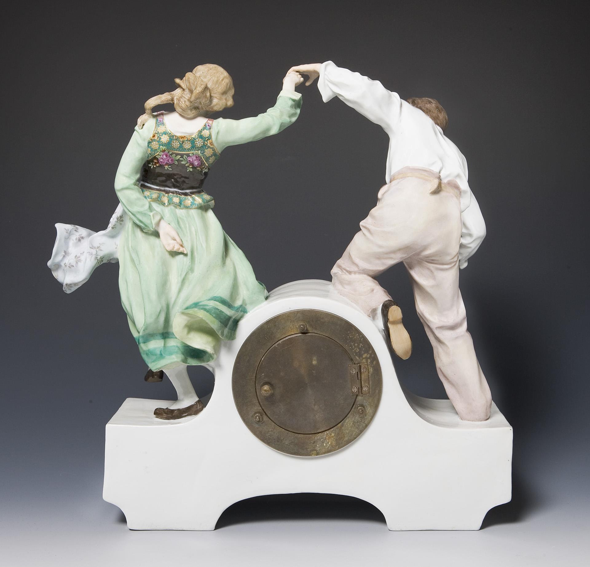 Jugendstil-Uhrgehäuse mit Tanzpaar. Meissen.