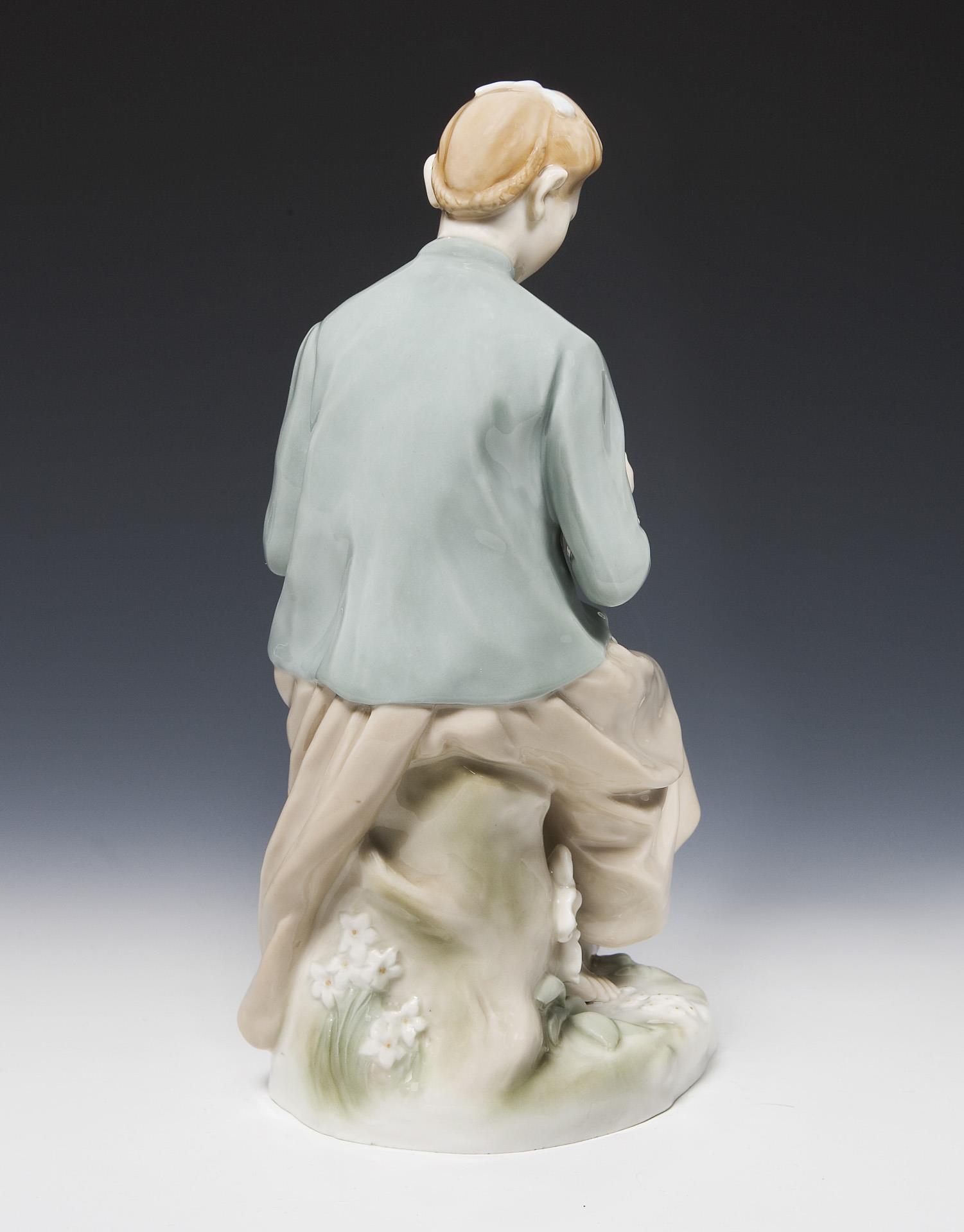 Jugendstil-Figur: Mädchen, strickend. Meissen.