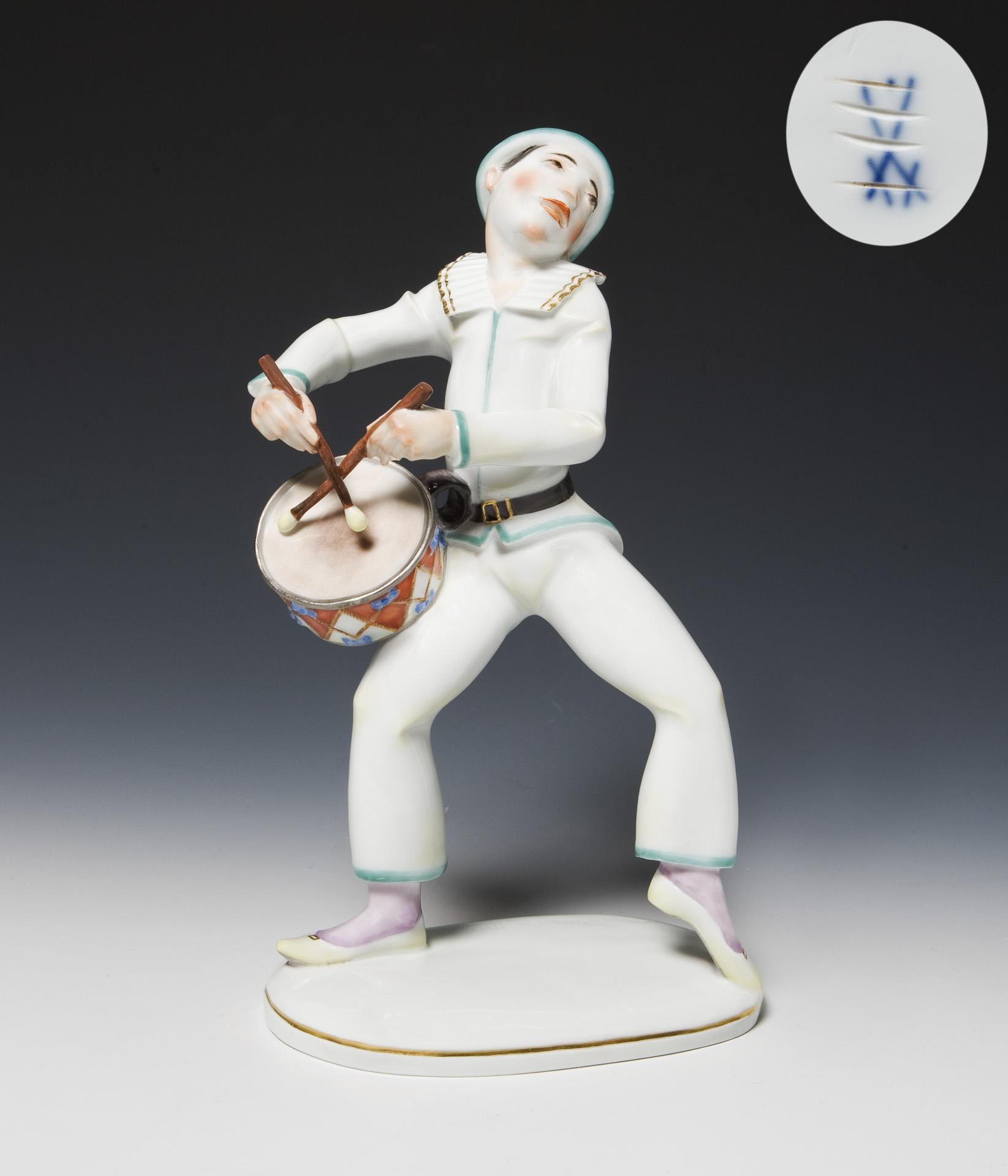 Art déco-Figur: Harlekin mit Trommel. Meissen.