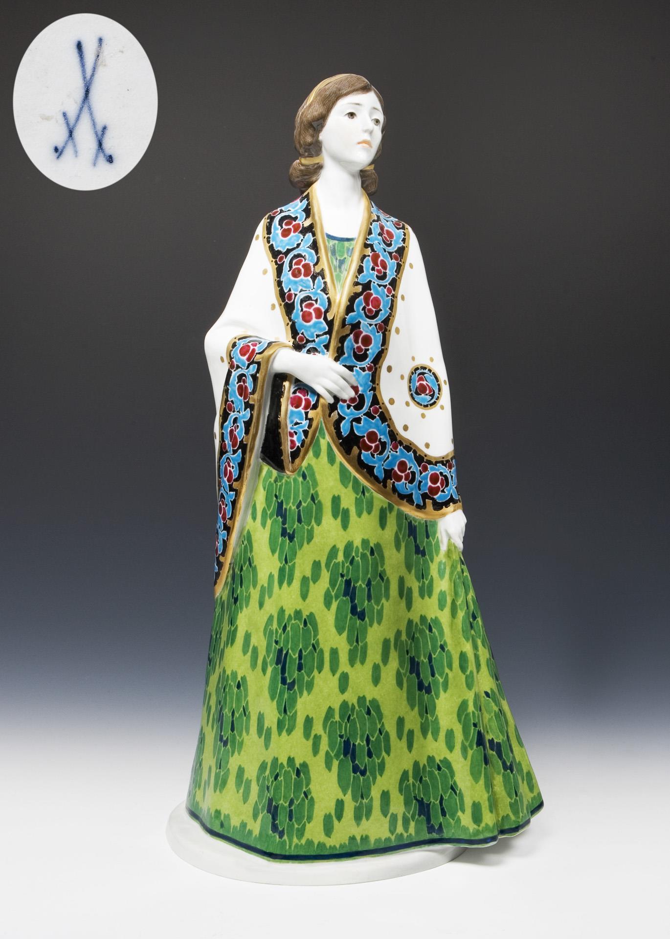 Große Jugendstil-Figur: Dame mit Cape. Meissen | Update.