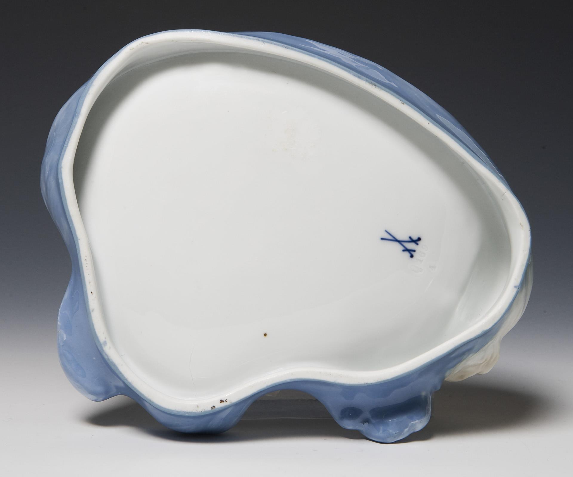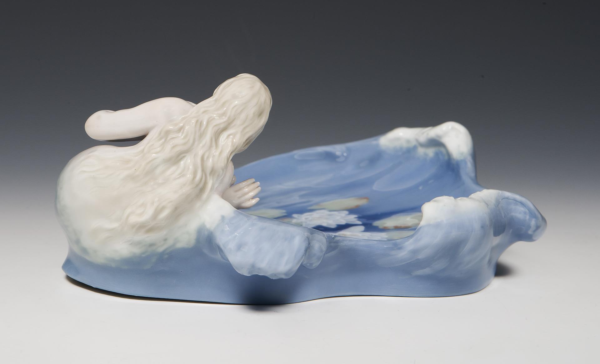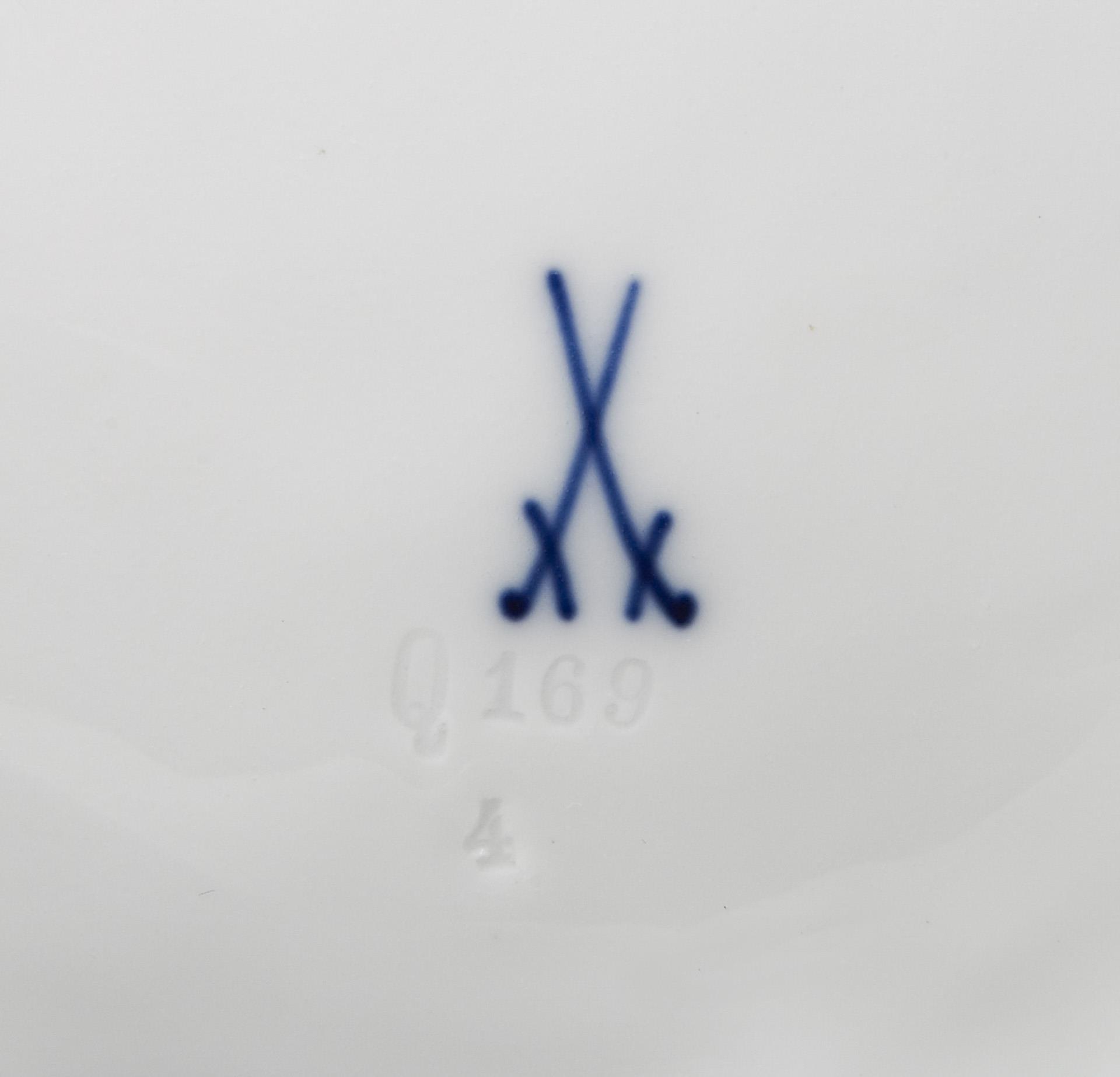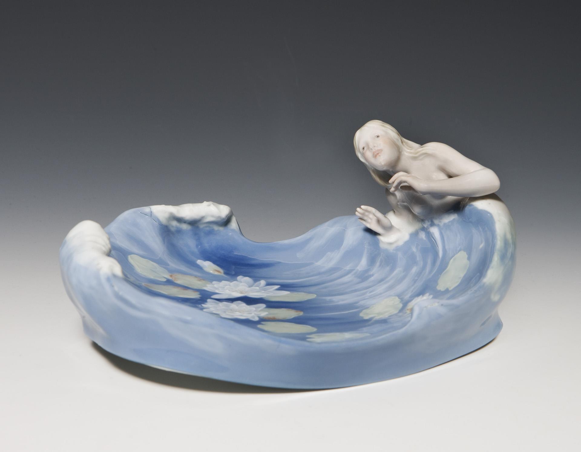 Modell-Jahr: 1898, farbige Unterglasurmalerei, Seerosen in Pâte-sur-pâte-Technik. Pressmarken, Schwertermarke. Rand minimal bestoßen, partiell kleine Brandrisse.