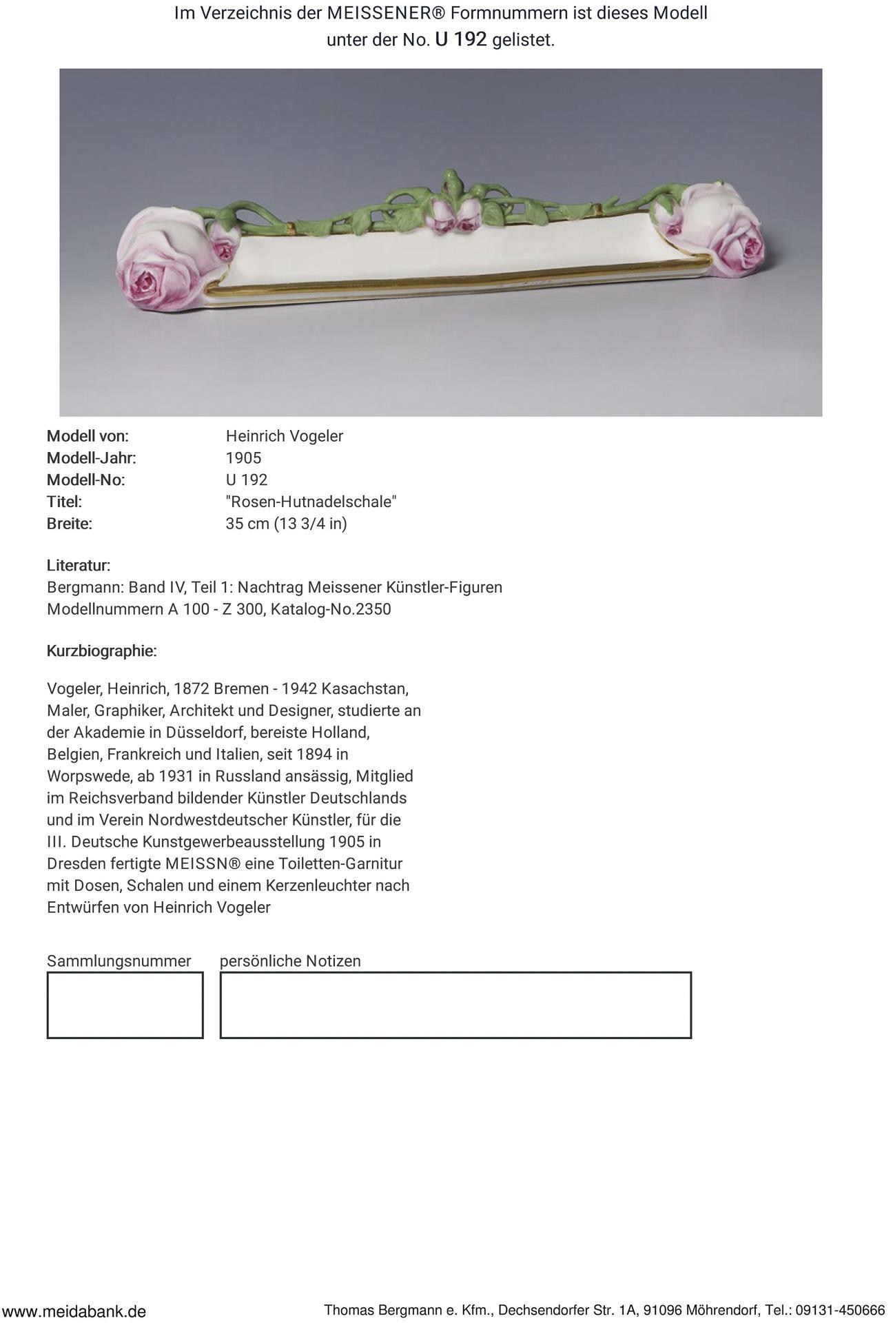 1905-1923. Modell-Nr. U 192. Modell von. VOGELER, Heinrich