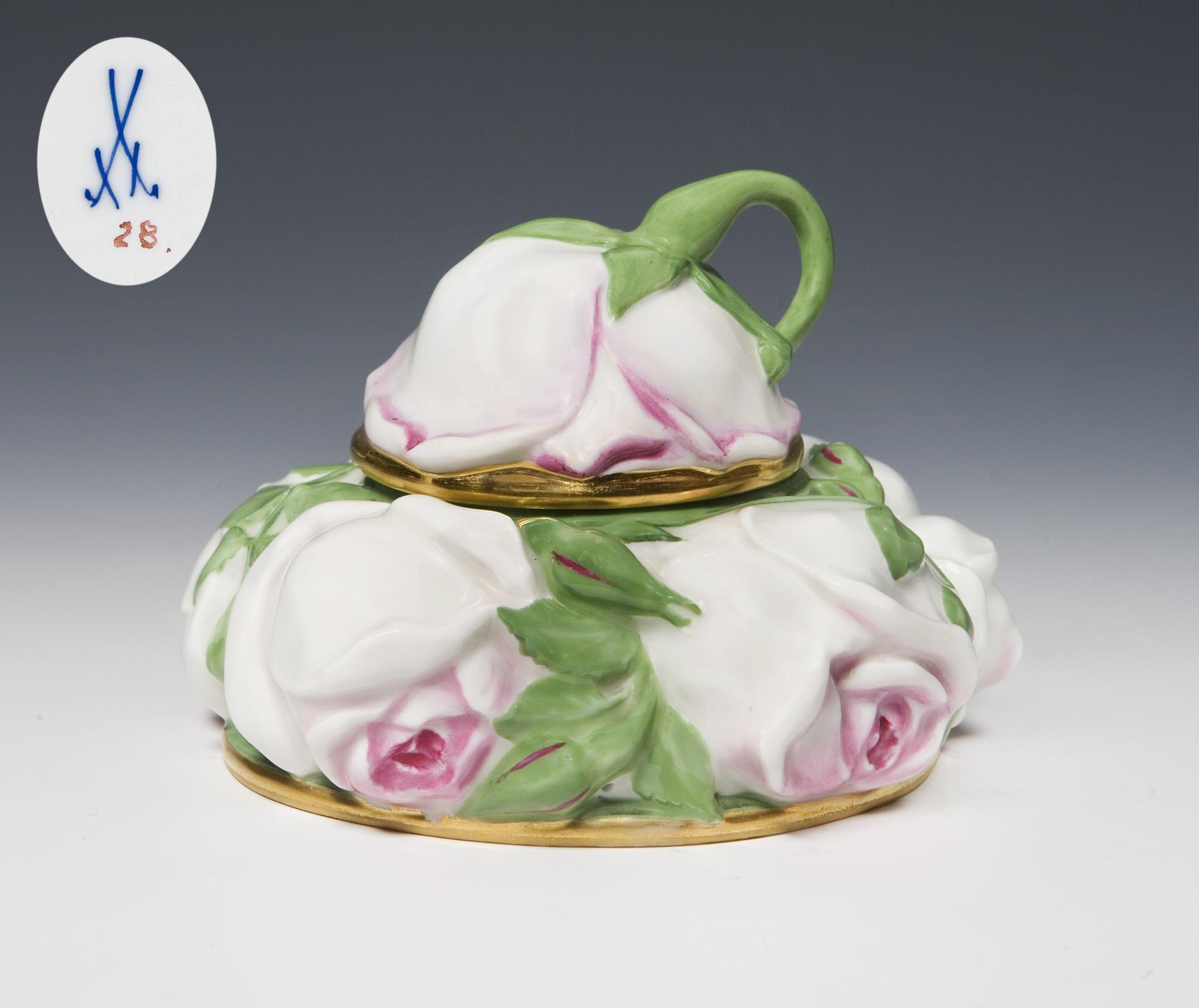Jugendstil-Dose mit plastischen Rosen. Meissen.