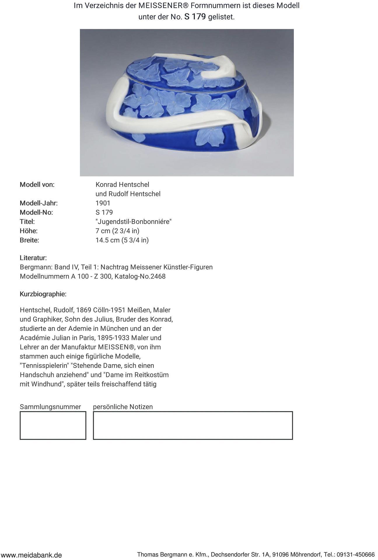 1901-1923. Modell-Nr. S 179. Modell von. HENTSCHEL, Rudolf