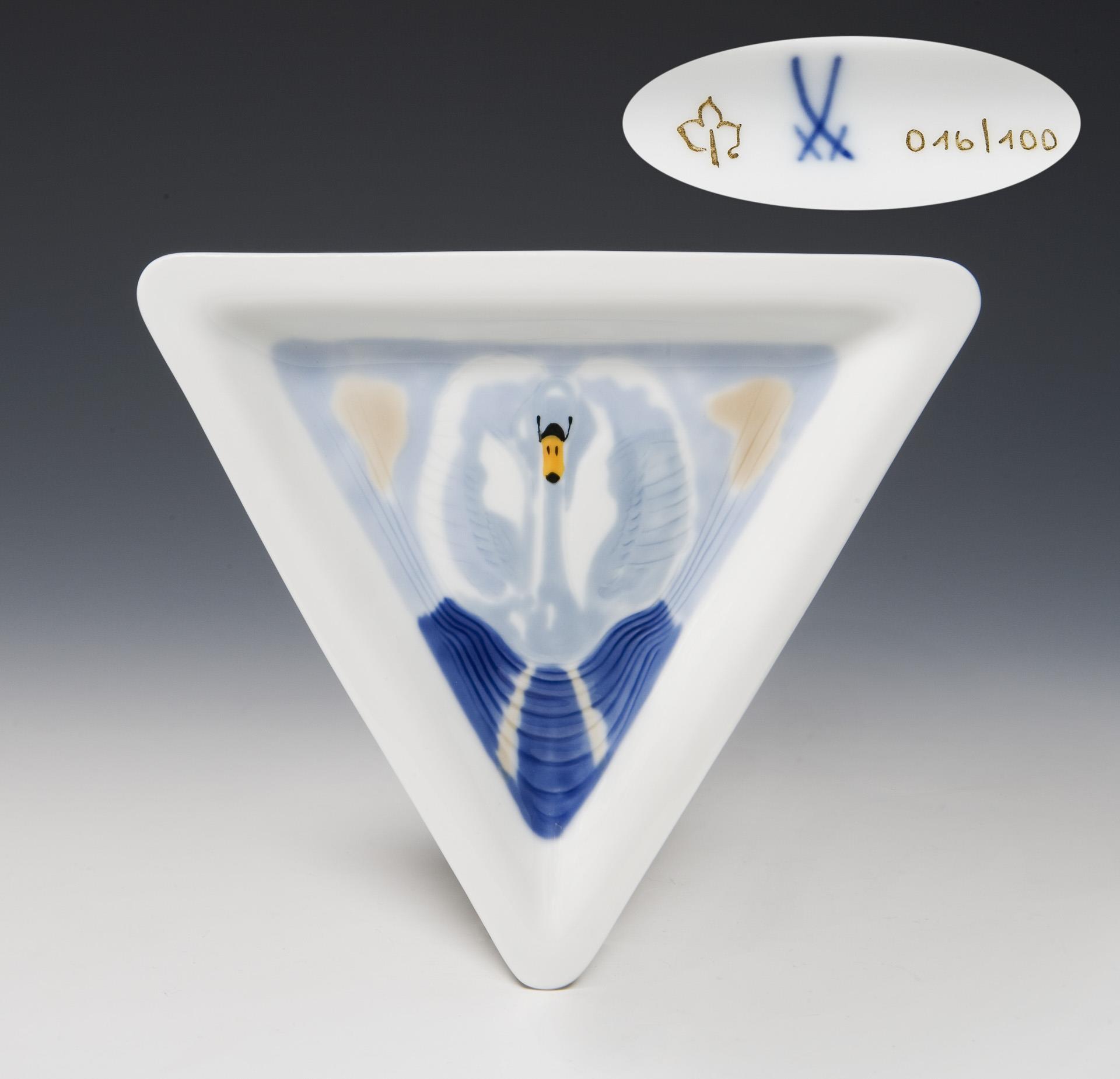 Modell-Jahr: 1908, farbige Unterglasurbemalung, reliefiert. Unglasierter Boden, Malermarke, goldenes Sondersignet Edition "SinnBilder", nummeriert: 16/100, Schwertermarke.