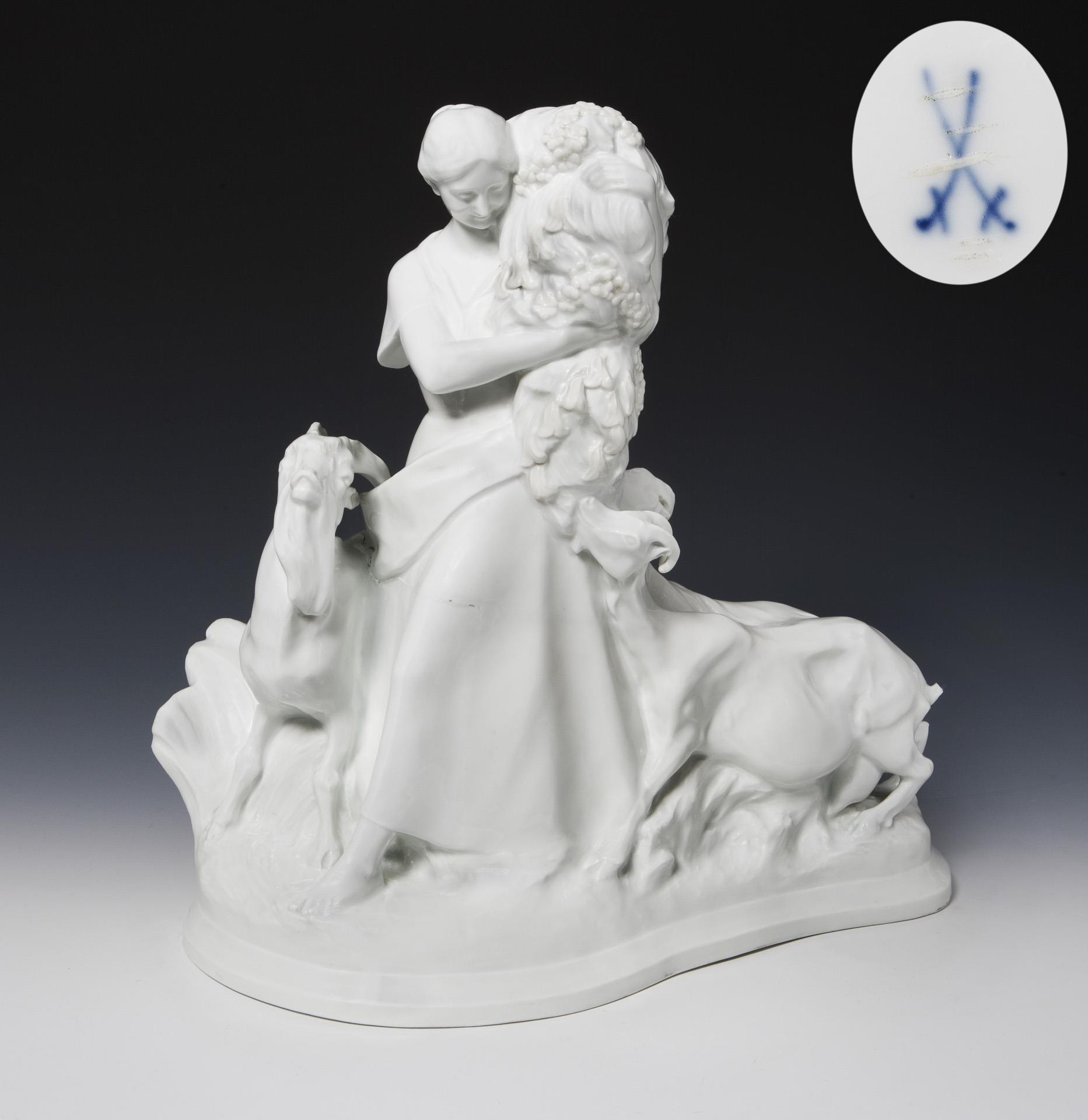 Seltene große Jugendstil-Figurengruppe: Mädchen mit Ziegen. Meissen.