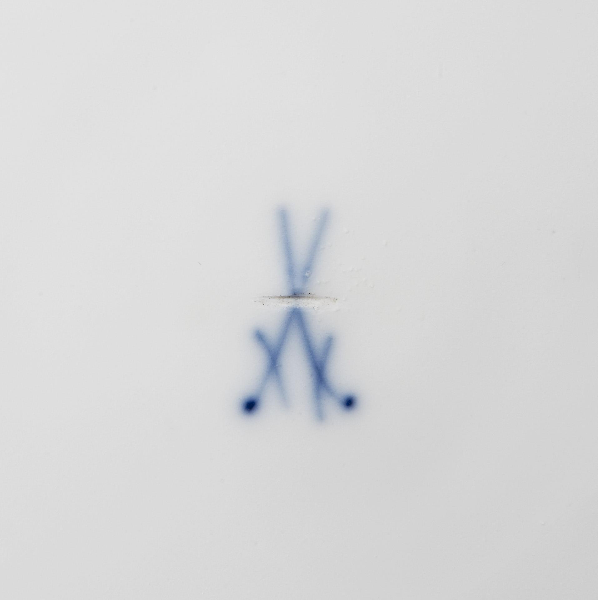 Form-Modell von Ernst August Leuteritz und Mitarbeiter, Modell-Jahr: 1863-1865 (Form), Dekor von Georg Otto Voigt 1903. Farbige Unterglasurmalerei, Ritzmarken, Schwertermarke einmal gestrichen. Das Pastell mit dem Motiv, signiert und datiert, befindet sich im Archiv der Manufaktur Meissen.