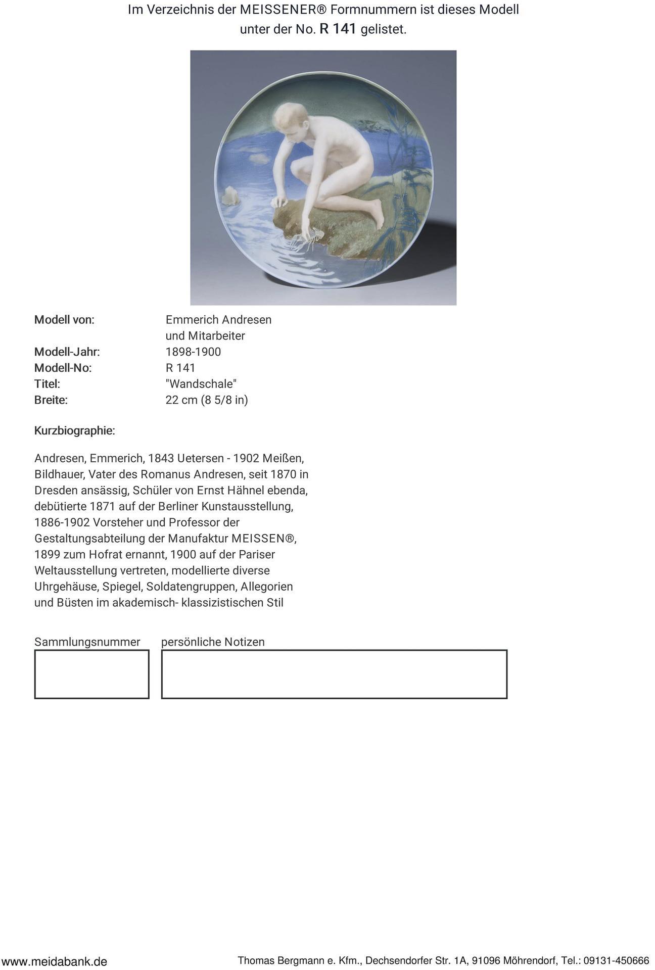 Jugendstil-Schale: Knabe mit Krebs am Bach. Meissen.