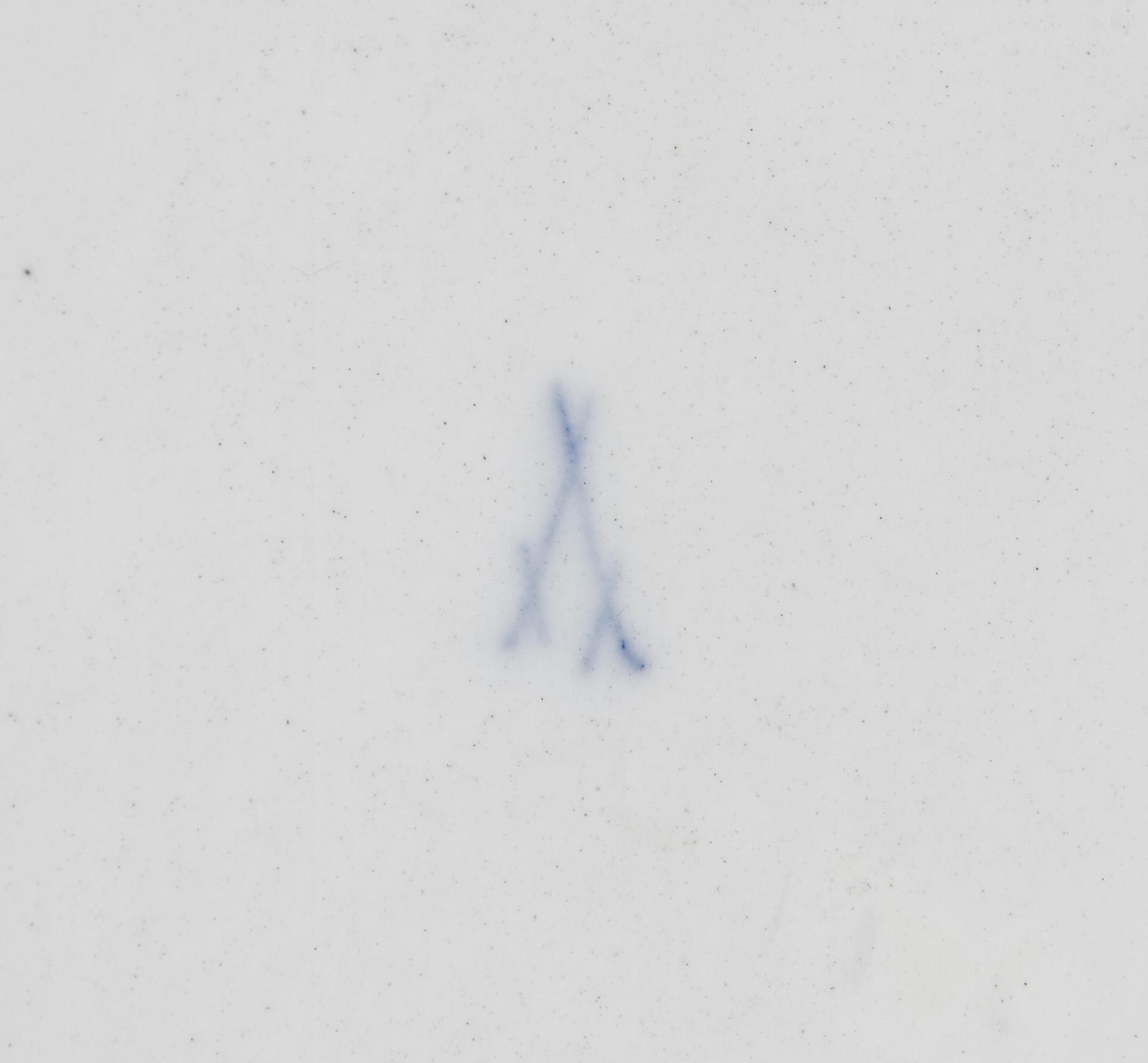 Modell-Jahr: 1905-1908, farbige Unterglasurmalerei, Goldstaffage. Ritzmarke, Pressmarke, Schwertermarke.