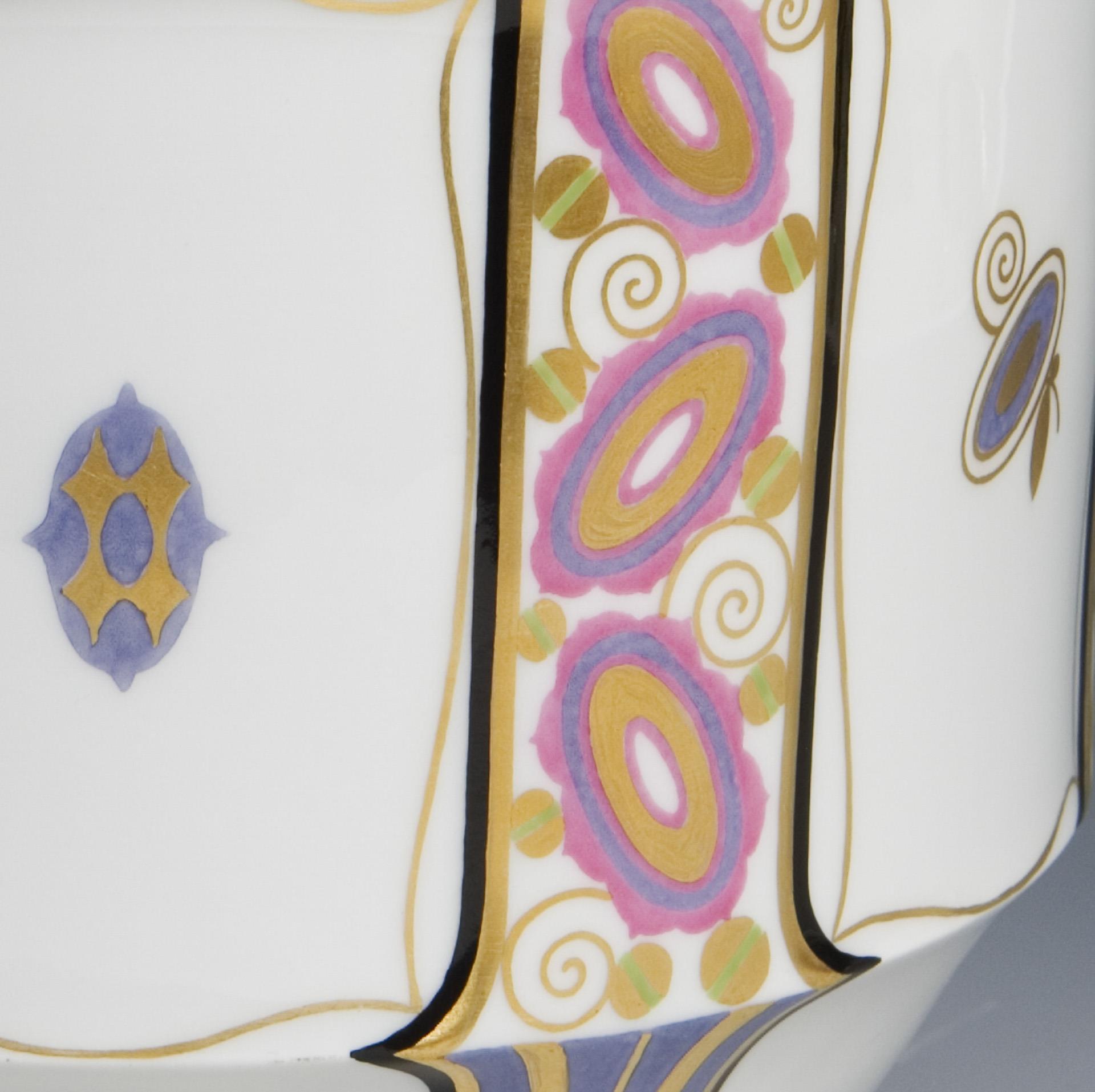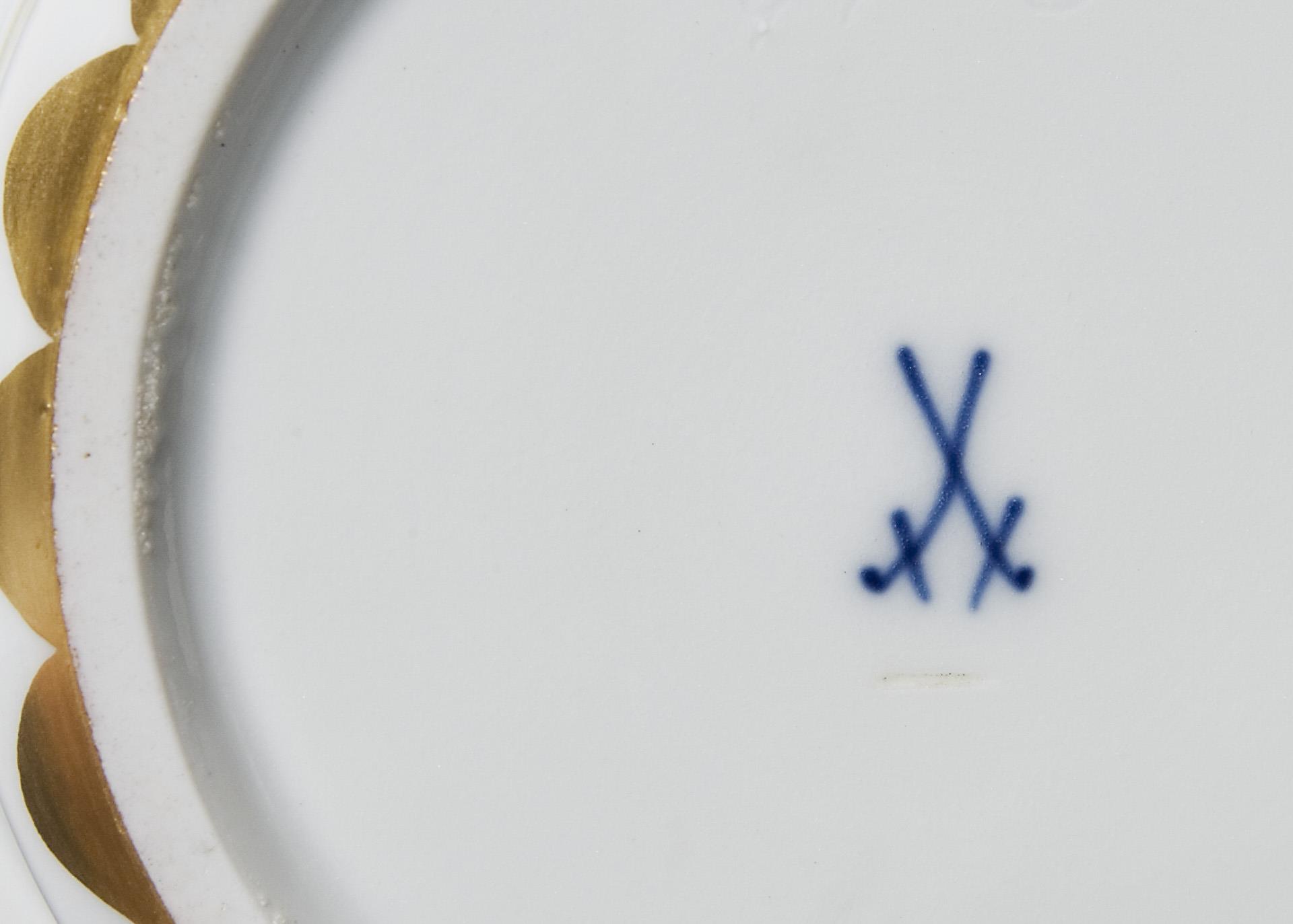 Modell-Jahr: 1913, farbige Pastellmalerei, Goldmalerei, schwarz konturiert, reliefiert. Ritzmarke, Pressmarke, Schwertermarke einmal gestrichen.