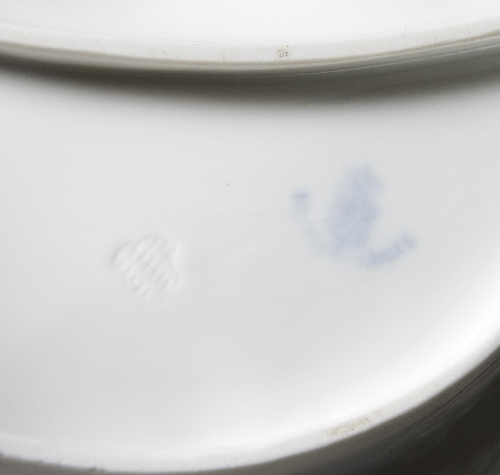 Modell-Jahr: 1899-1902, Dekor-Nr. 624. Bemalung in Chromgrün und Violett, gold staffiert. Pressmarken, eine Malermarke, blaue Bodenmarken.