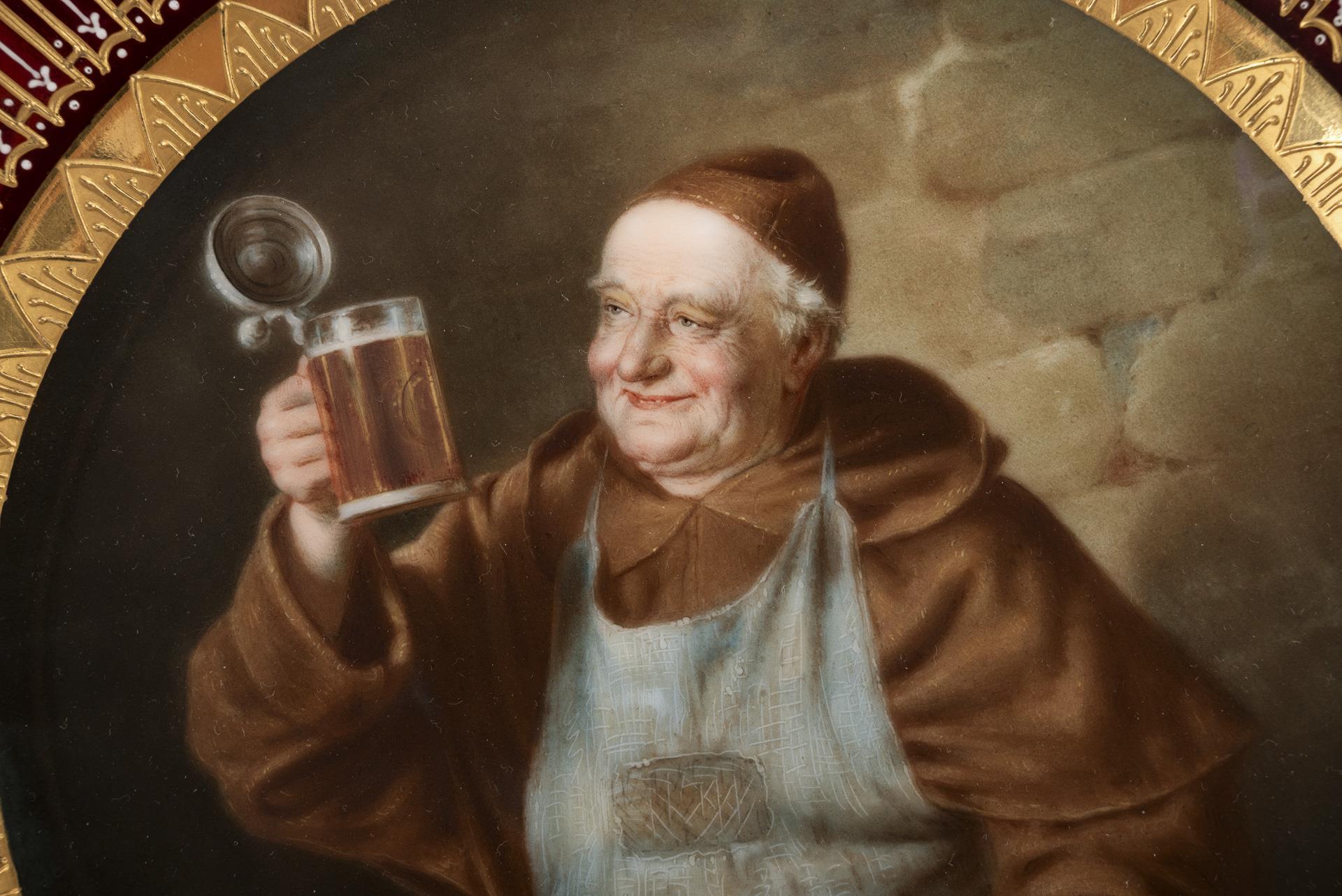 Bilderteller im Wiener Stil: Mönch mit Bierkrug.