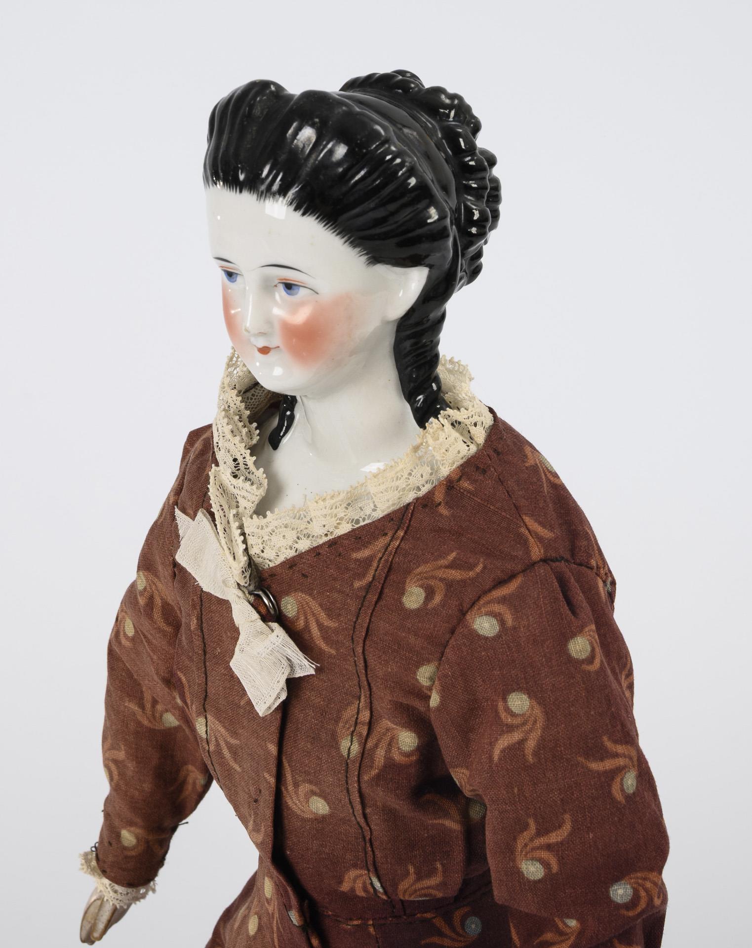 Spätbiedermeier-Puppe mit schön modellierter Steckfrisur.