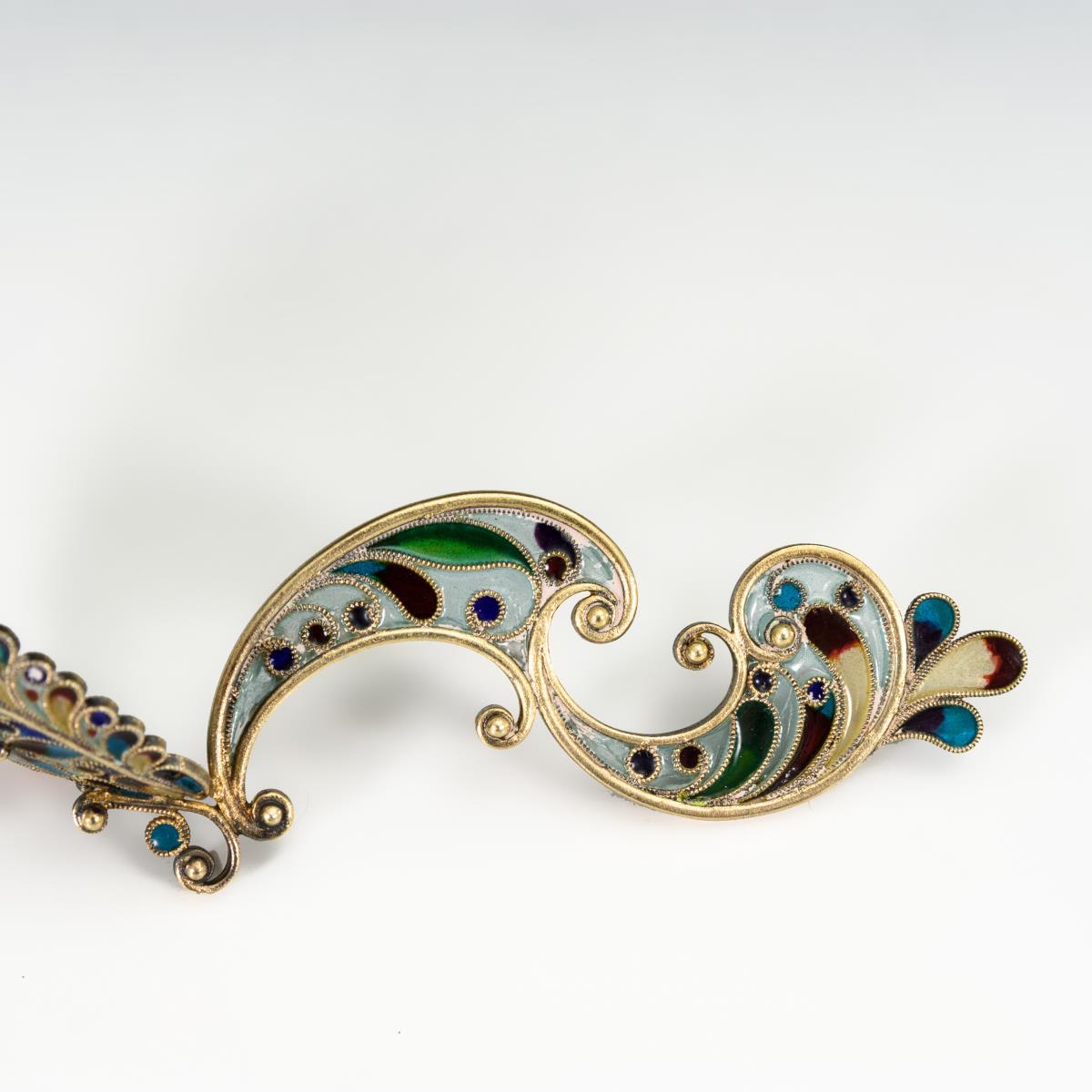 Silber, Email "plique-à-jour". L 11 cm.