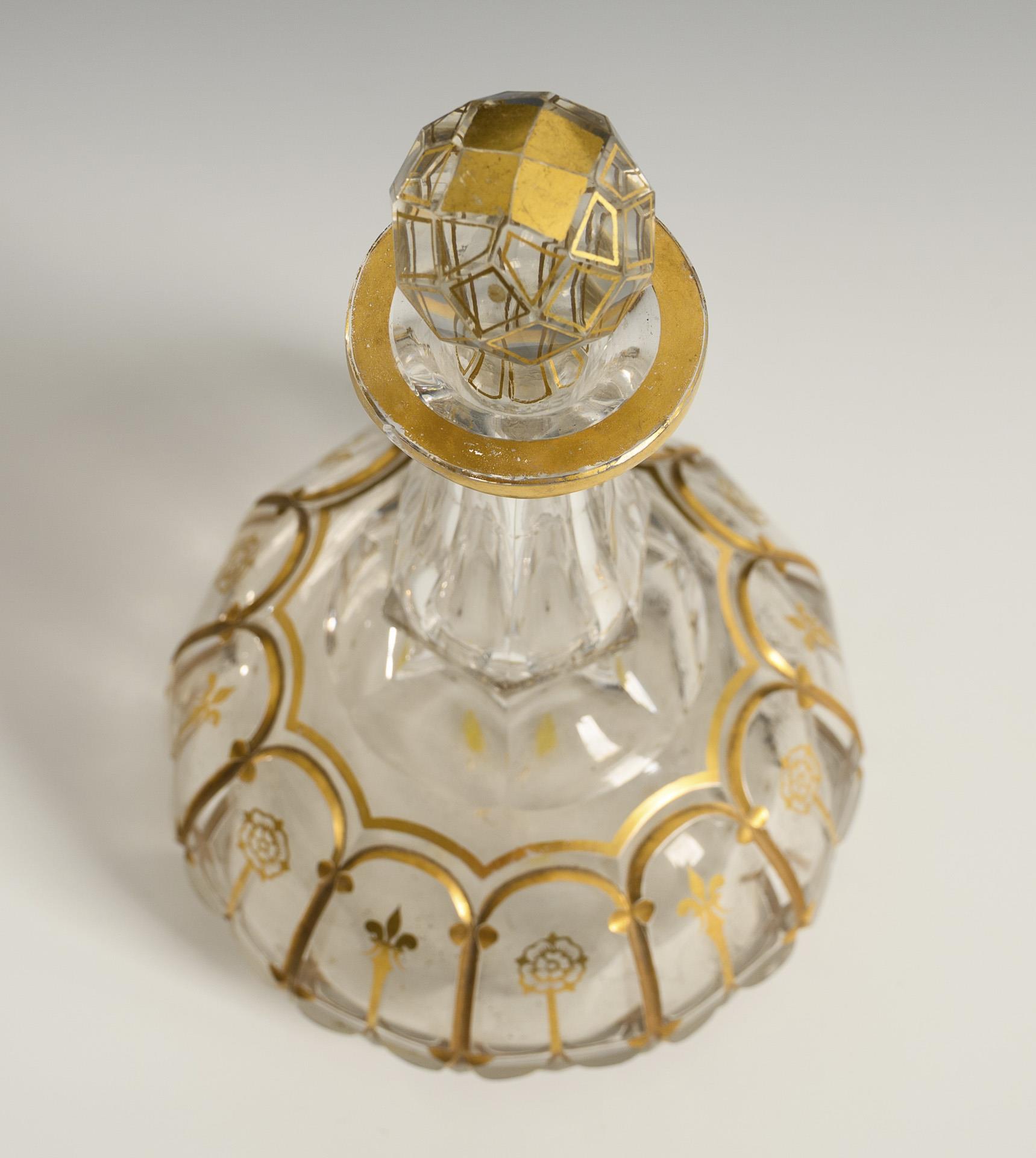 Farbloses Glas, 1x goldstaffiert. H max. 22 cm.
