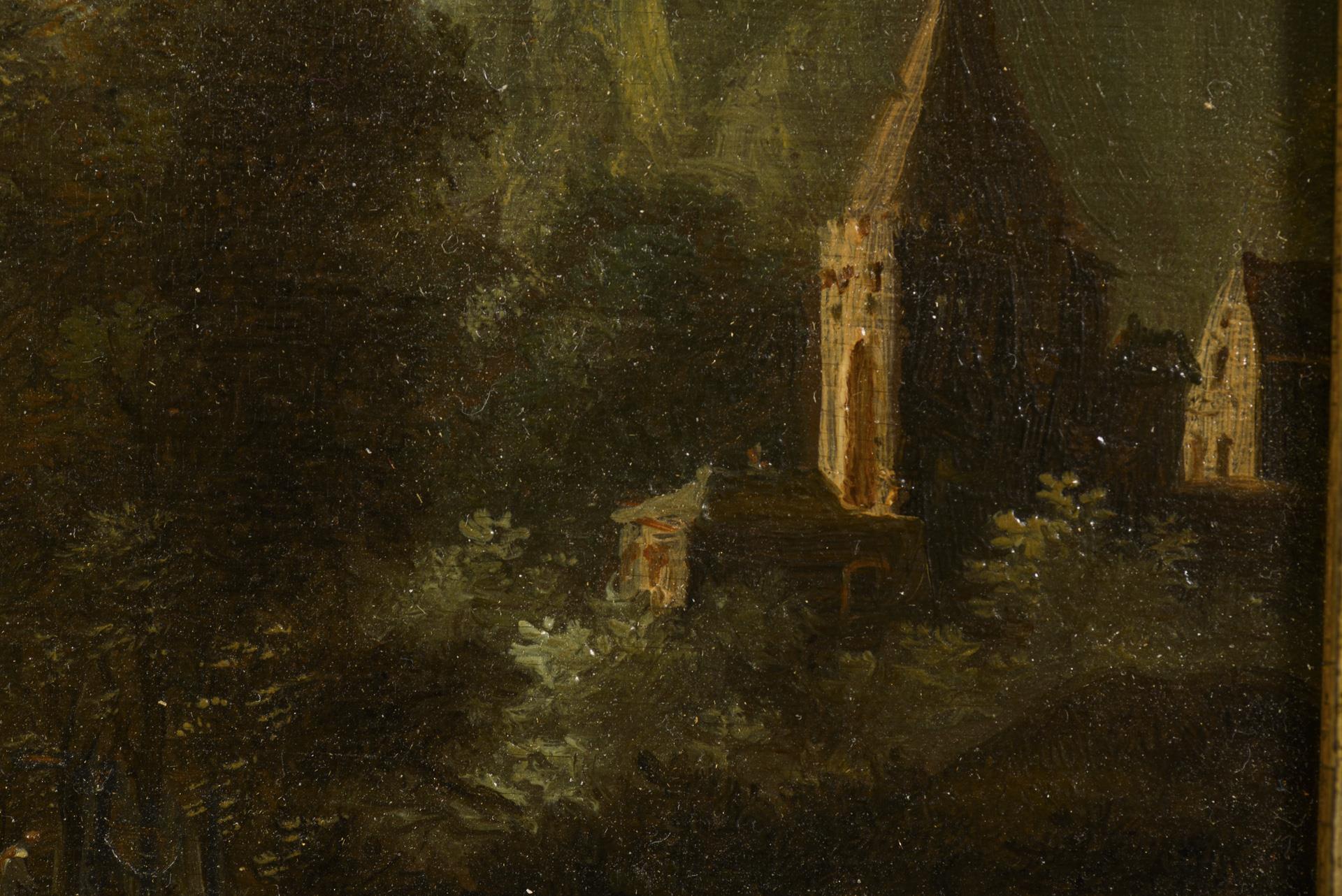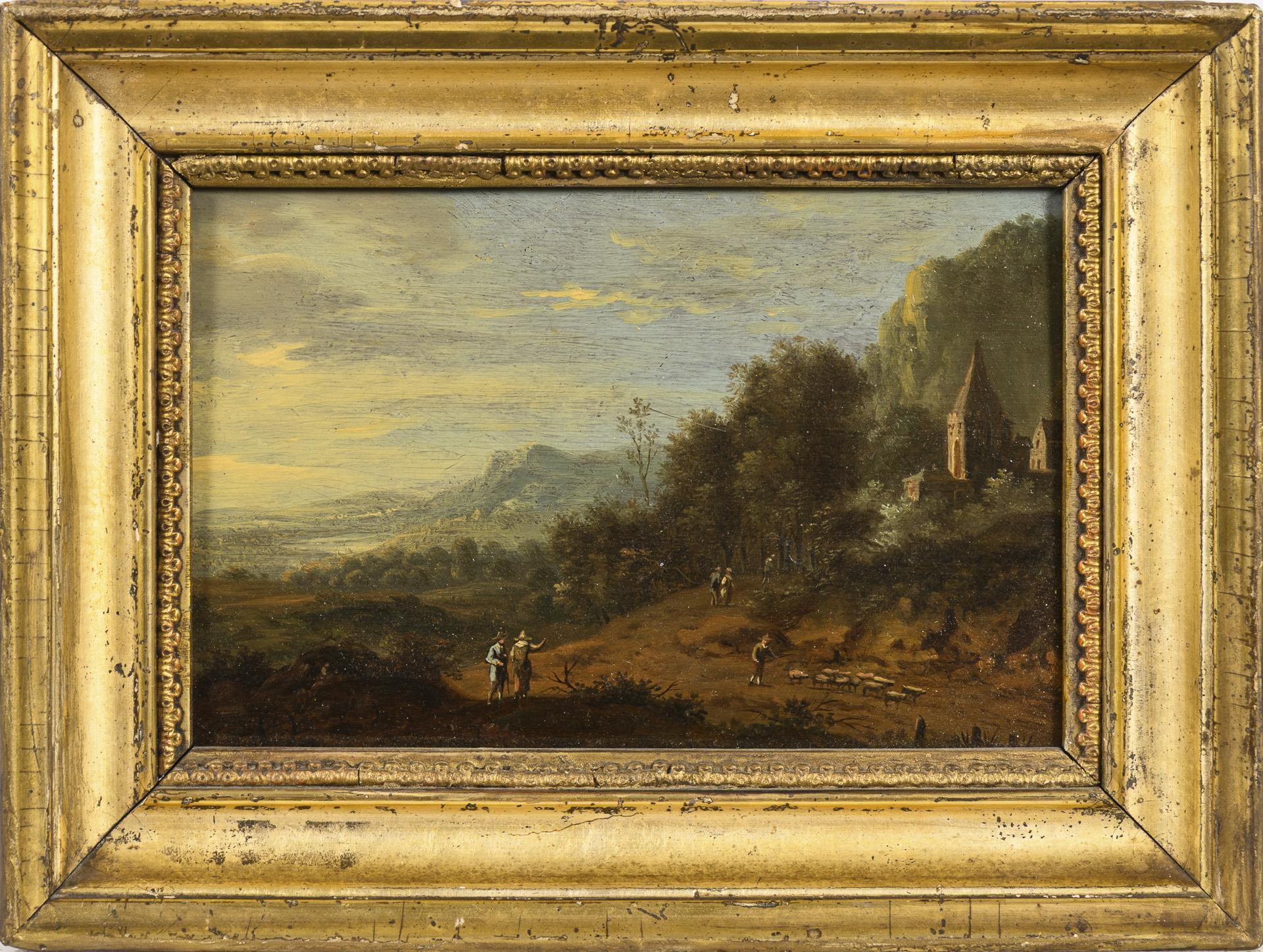 Kleine Landschaft mit Kirchlein und Personenstaffage