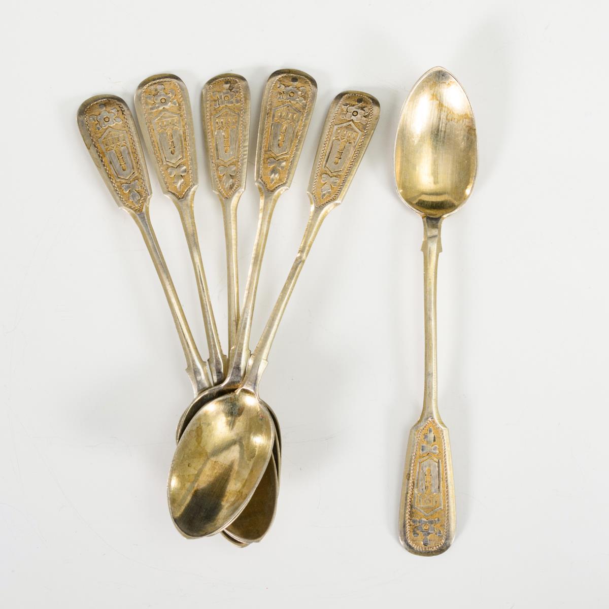 6 russische Mokkalöffel in Etui.