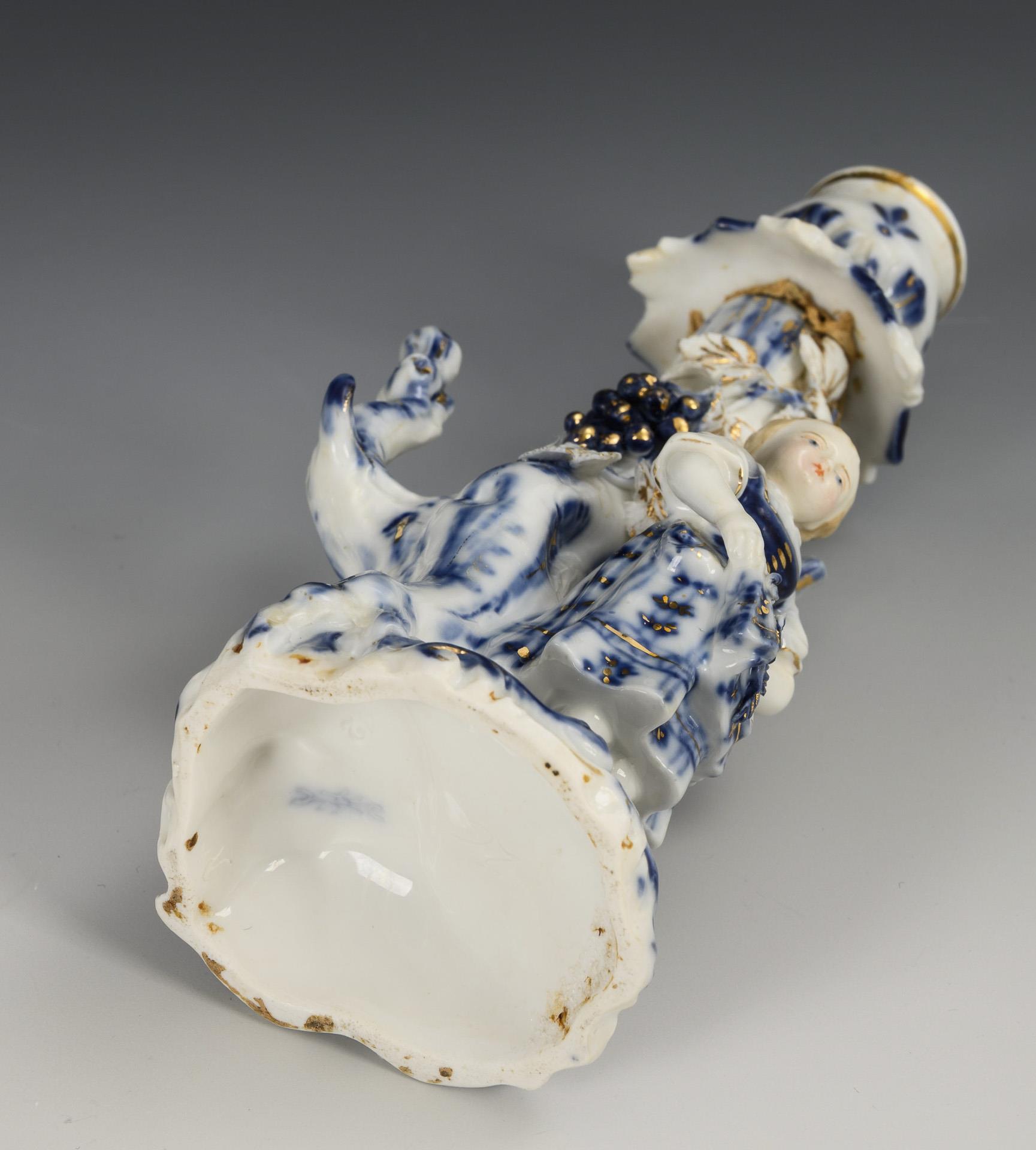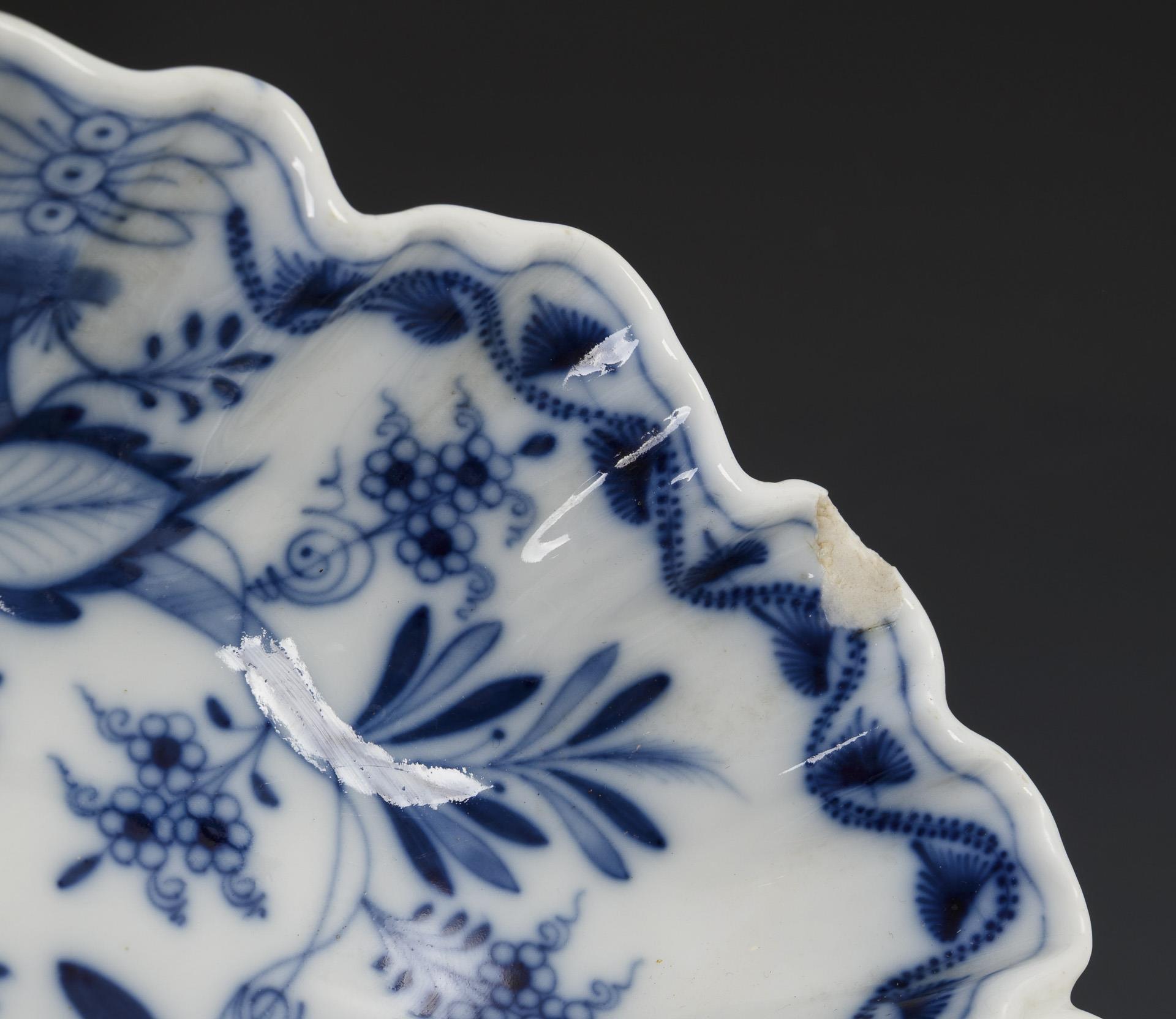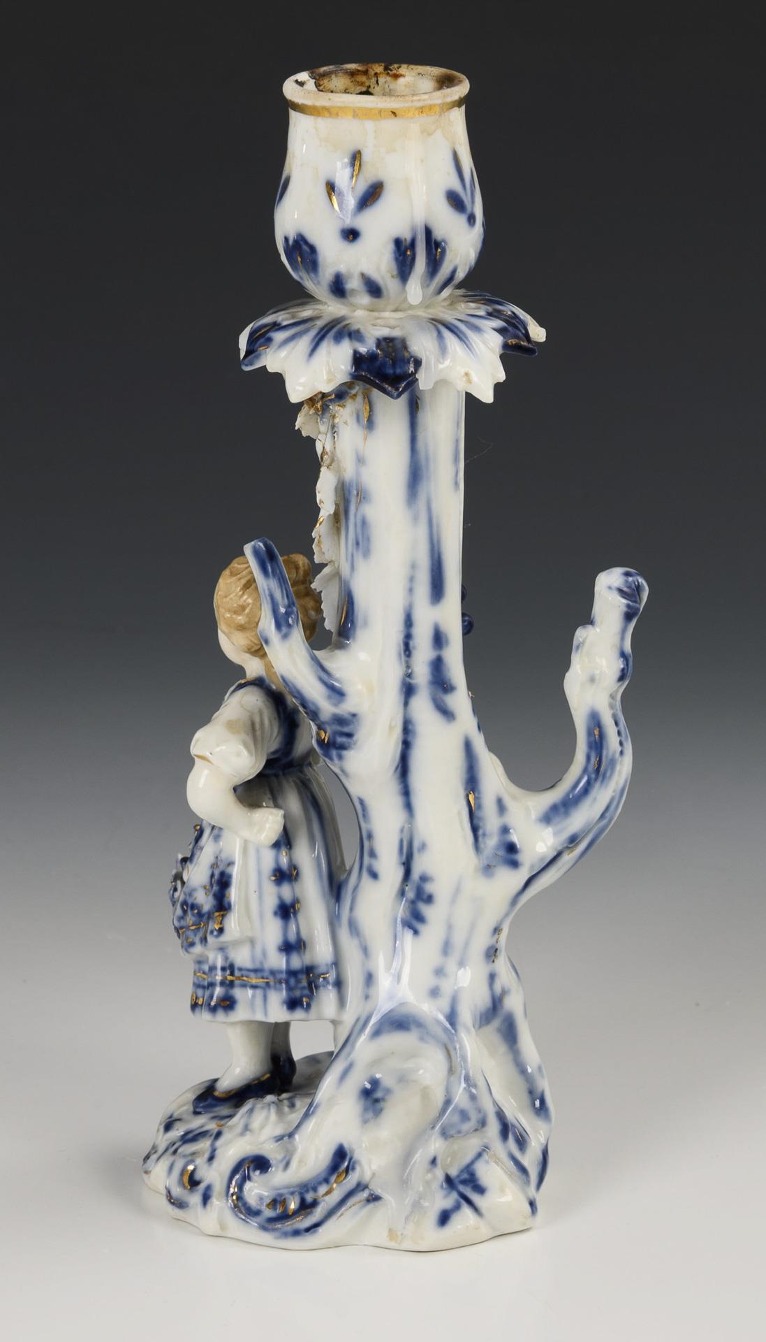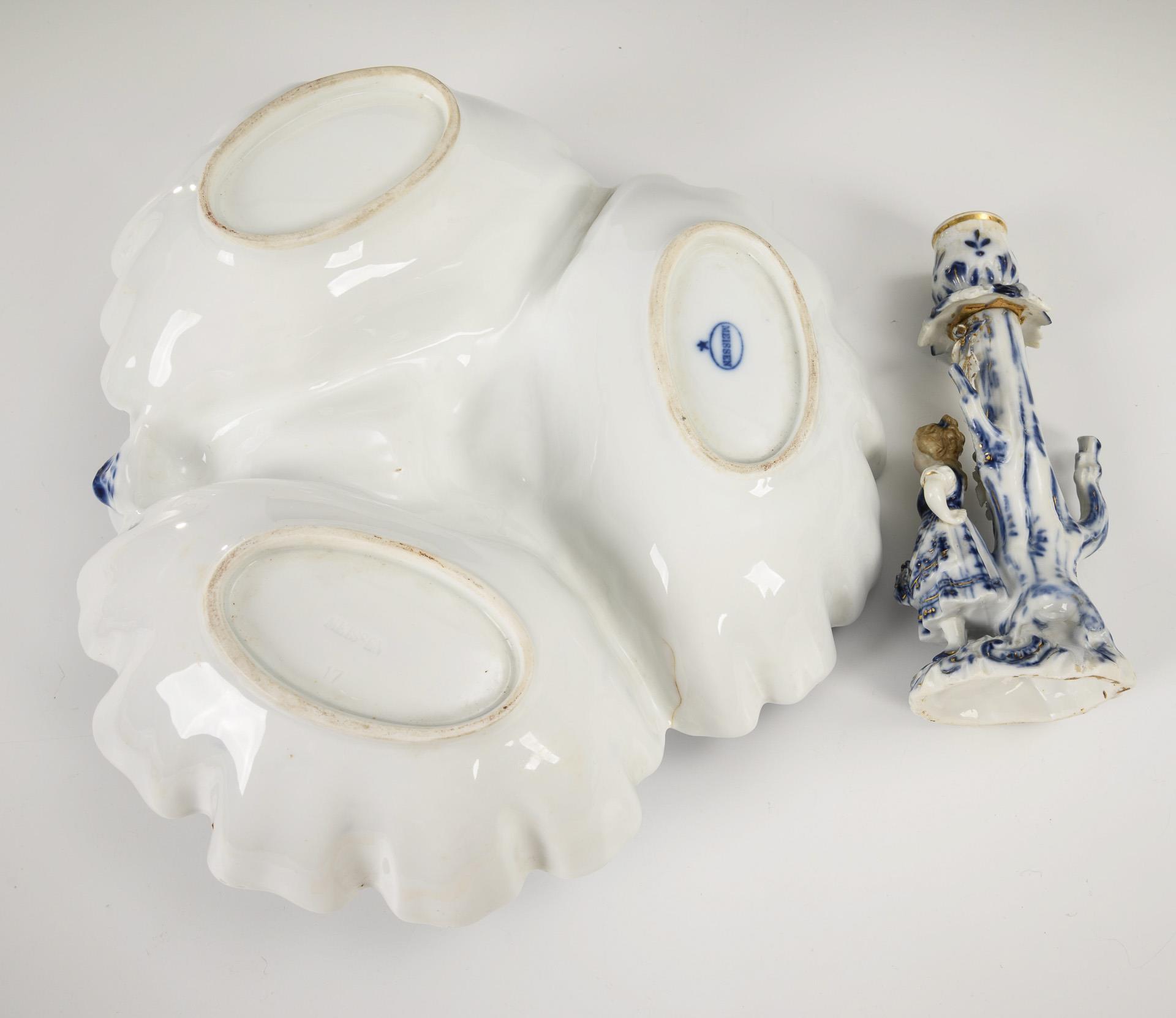 Unterglasurblaue Malerei, 1x mit Goldstaffage. Cabaret (Ø 27,5 cm), Leuchter (H 18,5 cm).