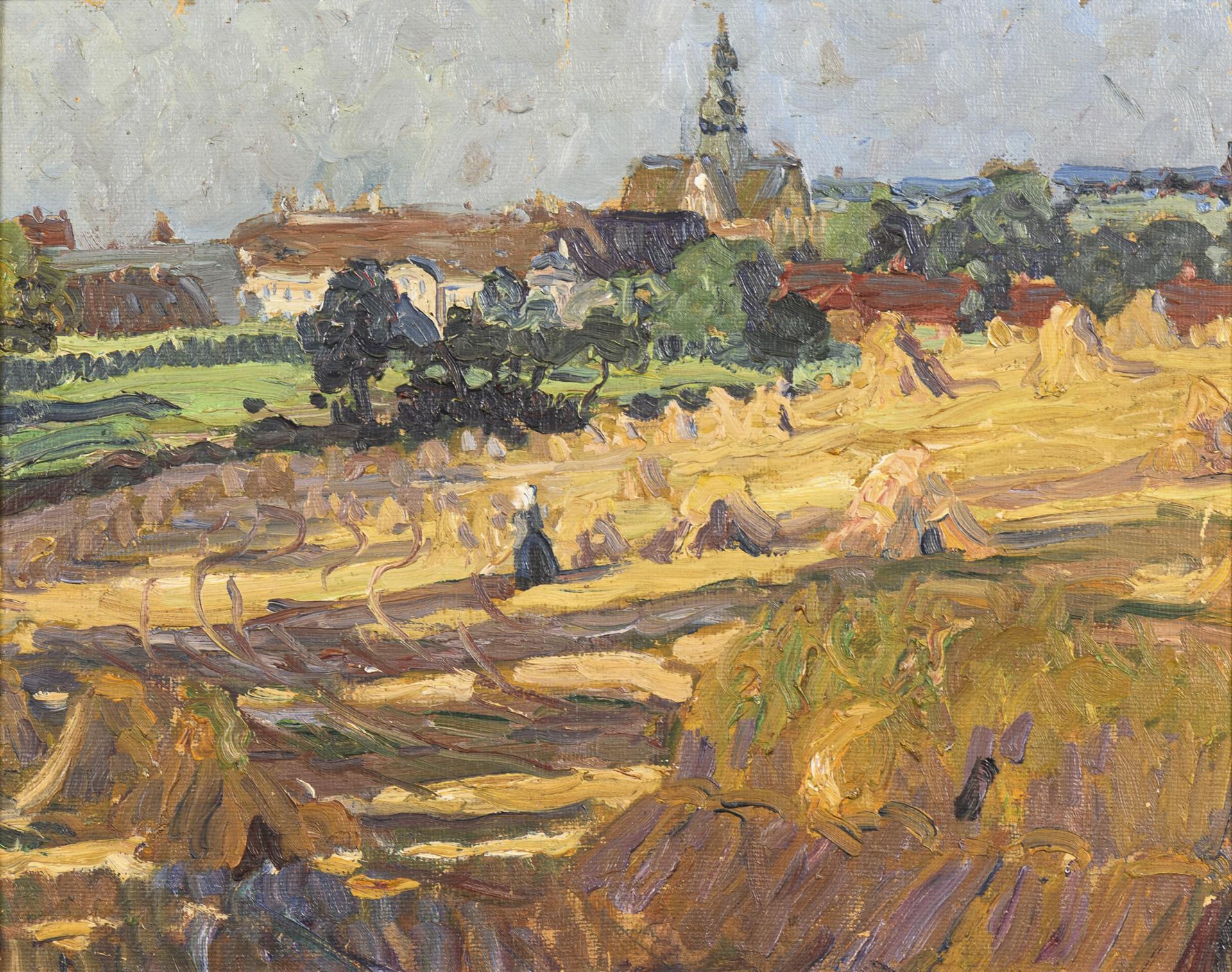 Öl/Malkarton. Unsigniert, verso sonnige Wiesen- und Waldlandschaft. Anfang 20. Jh.