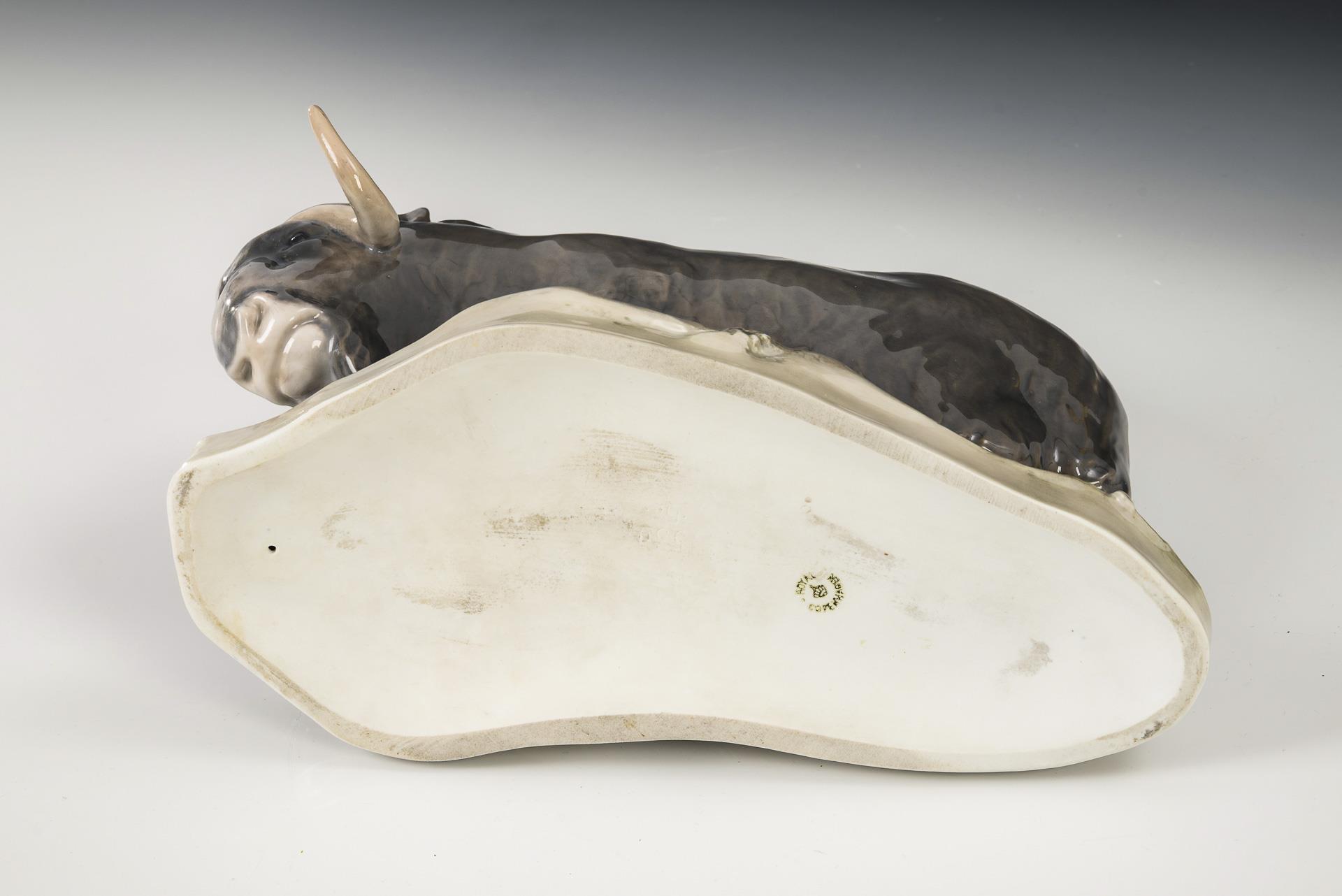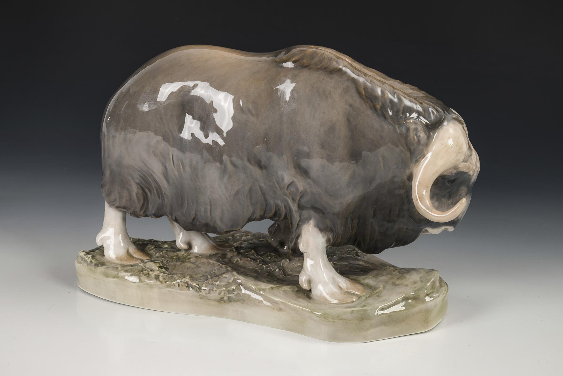Hörner restauriert, kleiner Brandriss im rechten Vorderbein.