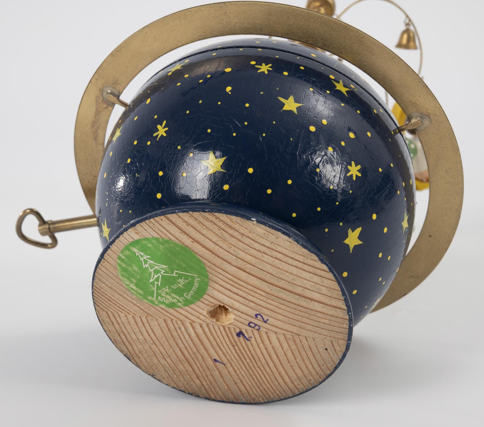 Spieldose "Weltkugel" mit 5 kleinen Engeln in Mondsichel. Werk überholungsbedürftig (läuft langsam).