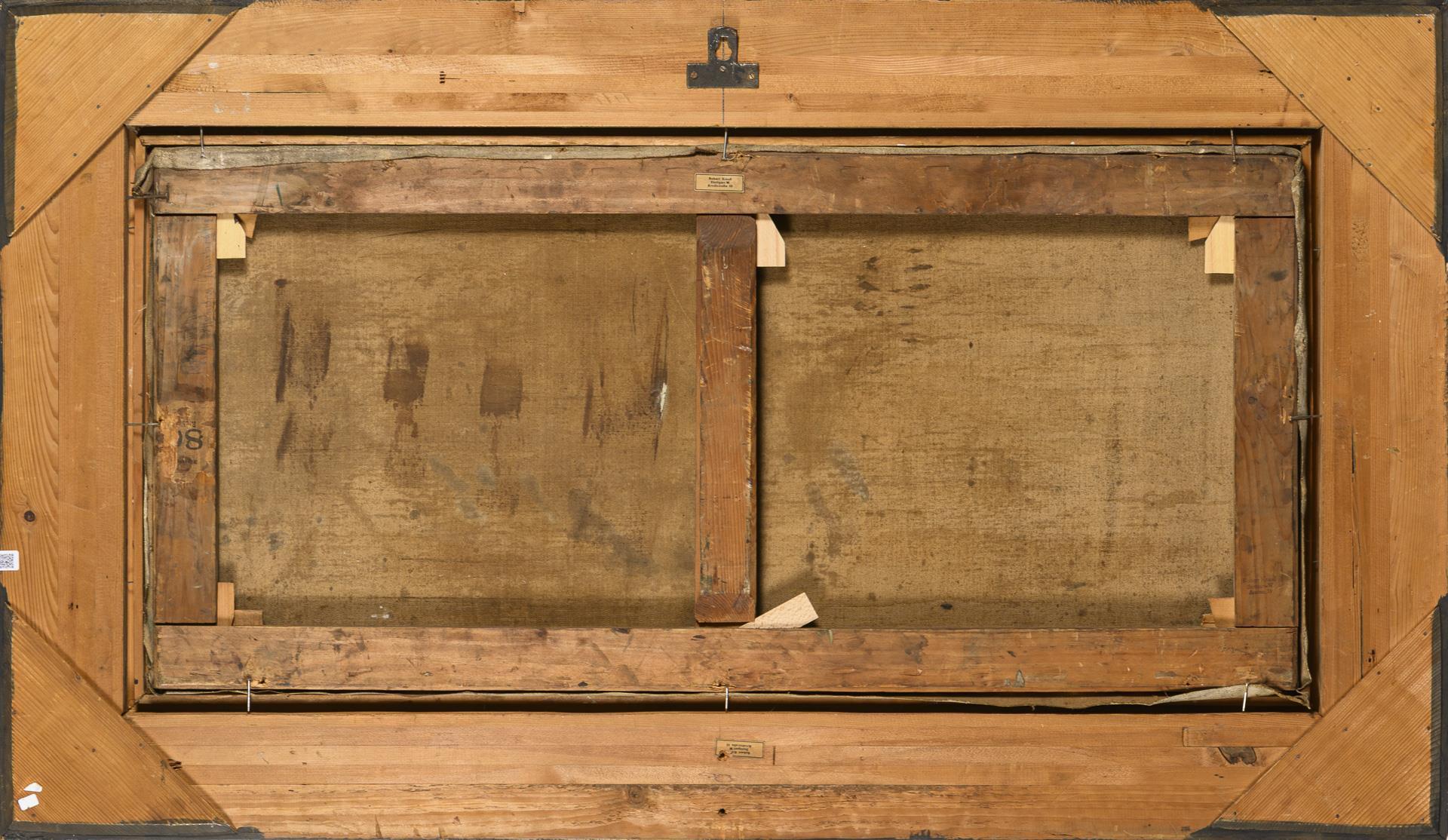 46 x 98 cm. Gerahmt : 73 x 125 cm (dunkler Lackrahmen).