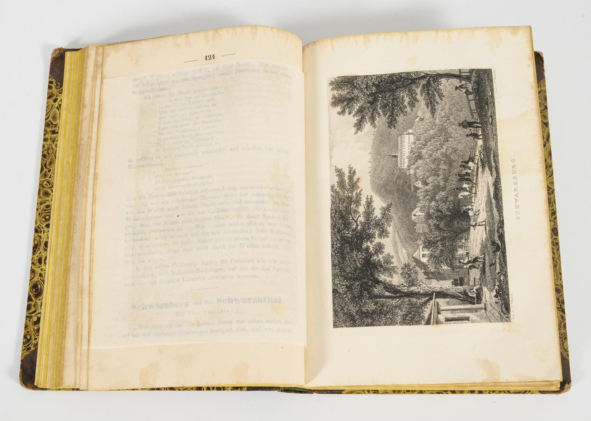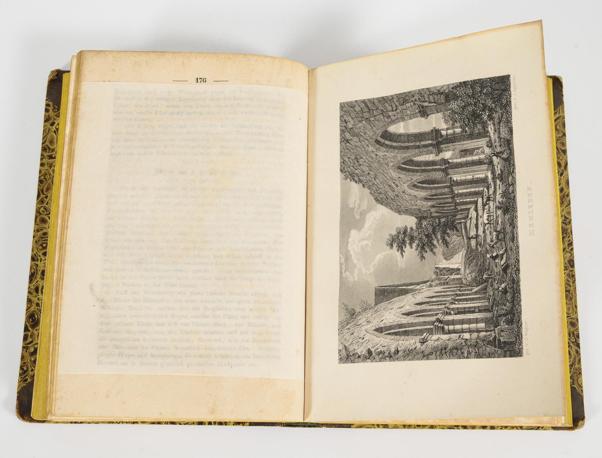 291 Textseiten mit Stahlstichen, im Halbledereinband.