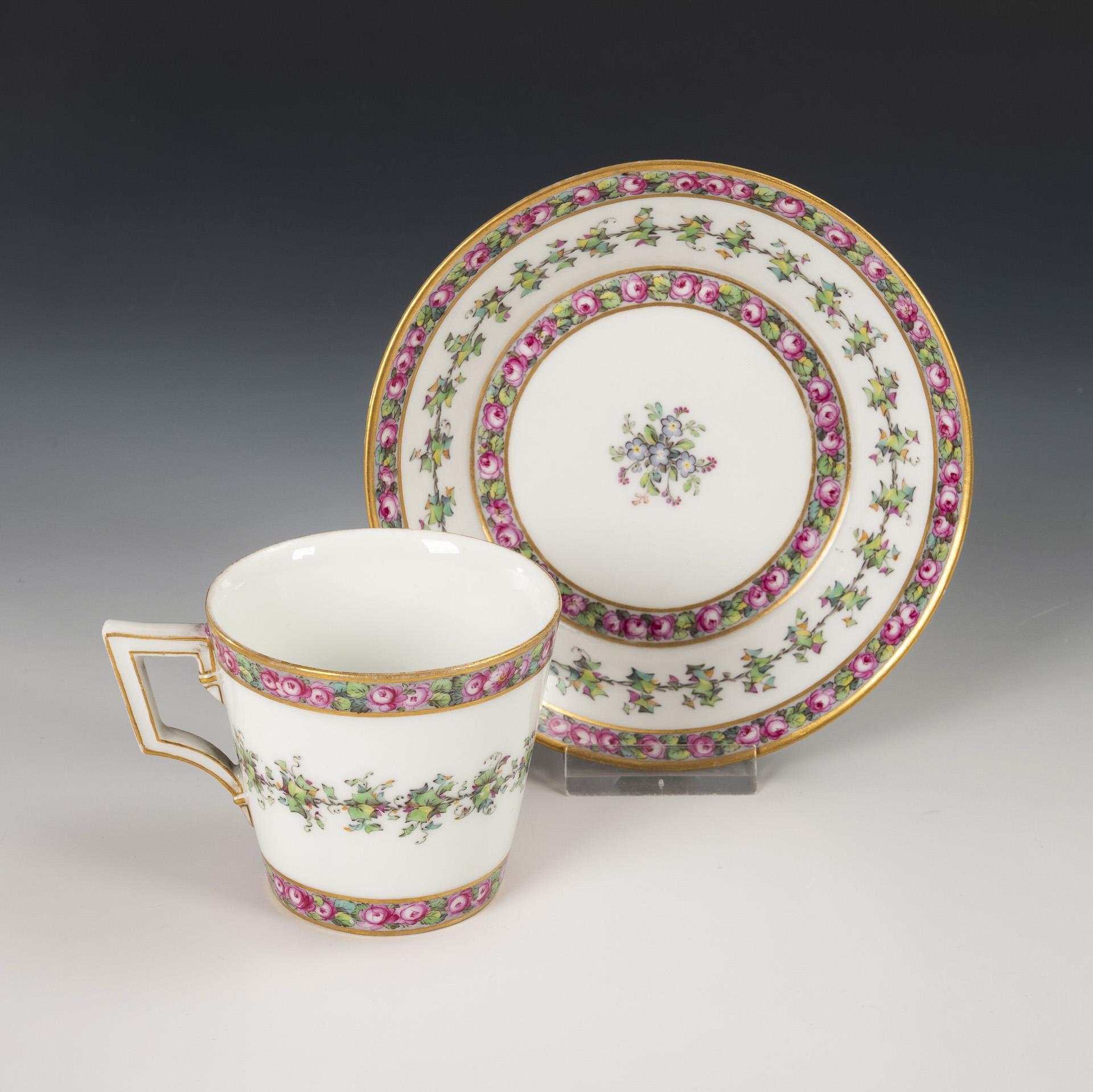 Empire-Vitrinentasse mit Rosenbordüre. KPM Berlin.