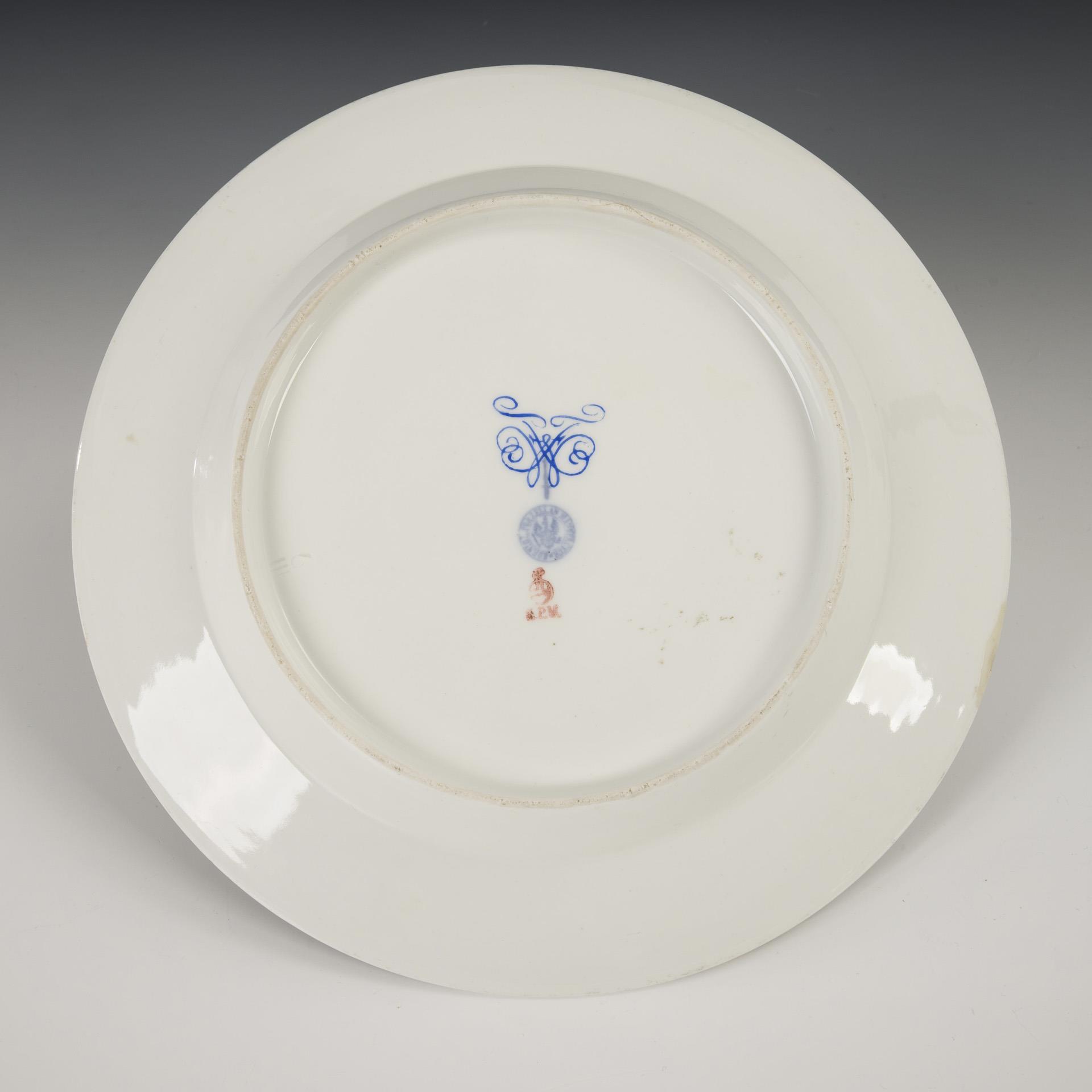 Teller mit "coloriertem Weinlaub" und Besitzermonogramm Wilhelm IV.. KPM Berlin.