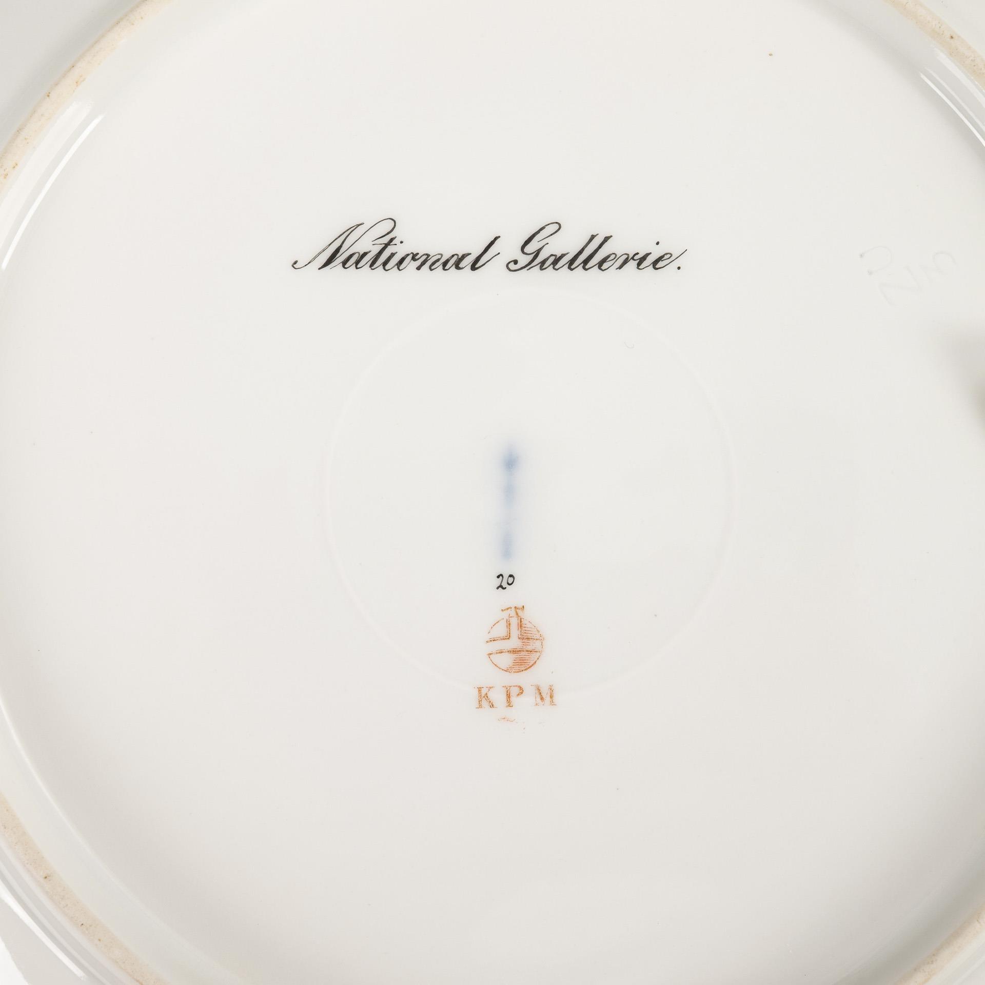 Modell "Englischglatt". Dessertteller mit durchbrochener Fahne, im Spiegel ein goldgerahmtes Medaillon mit der verso bezeichneten Ansicht der Nationalgalerie in Berlin.