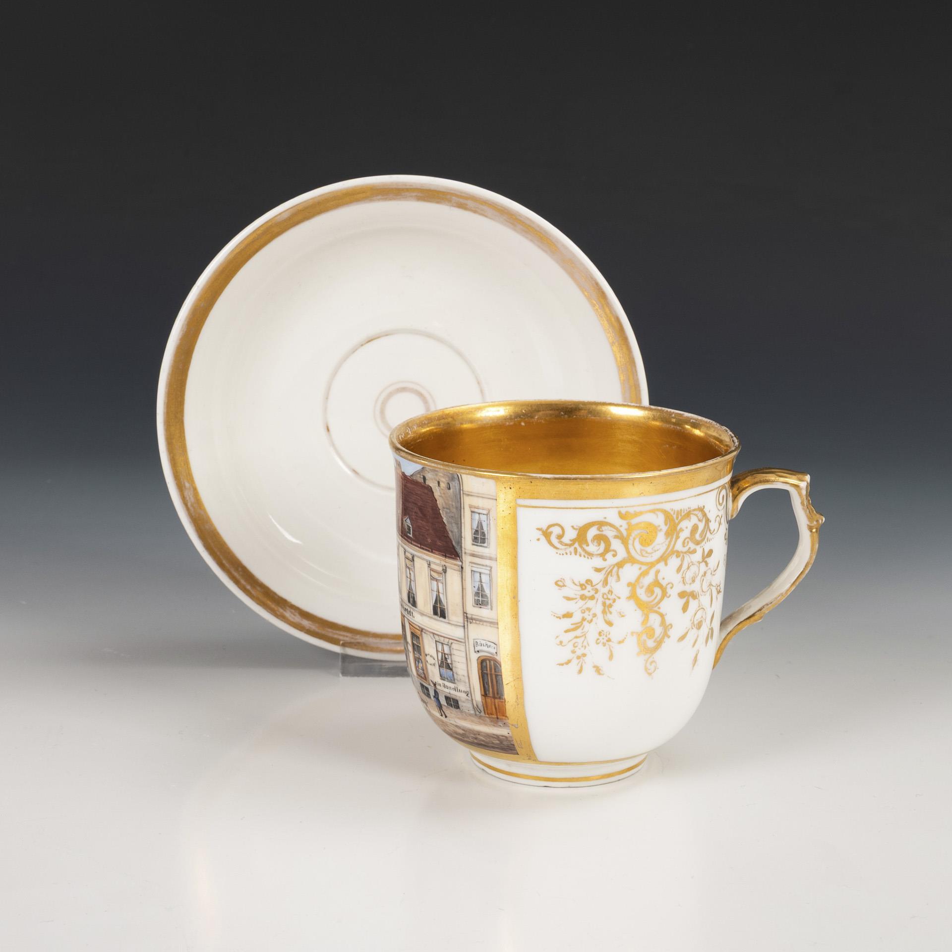 Tasse mit der Ansicht eines Berliner Geschäftes. KPM Berlin.