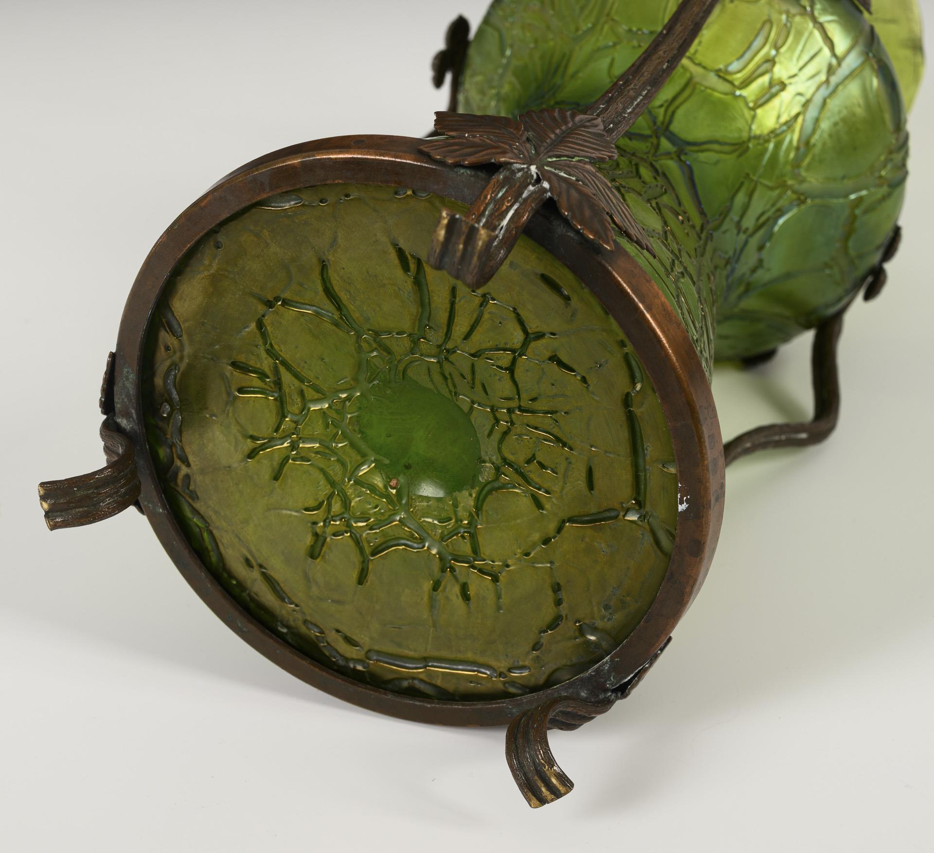 Grünes Glas, irisiert; Bronze. H 30 cm.