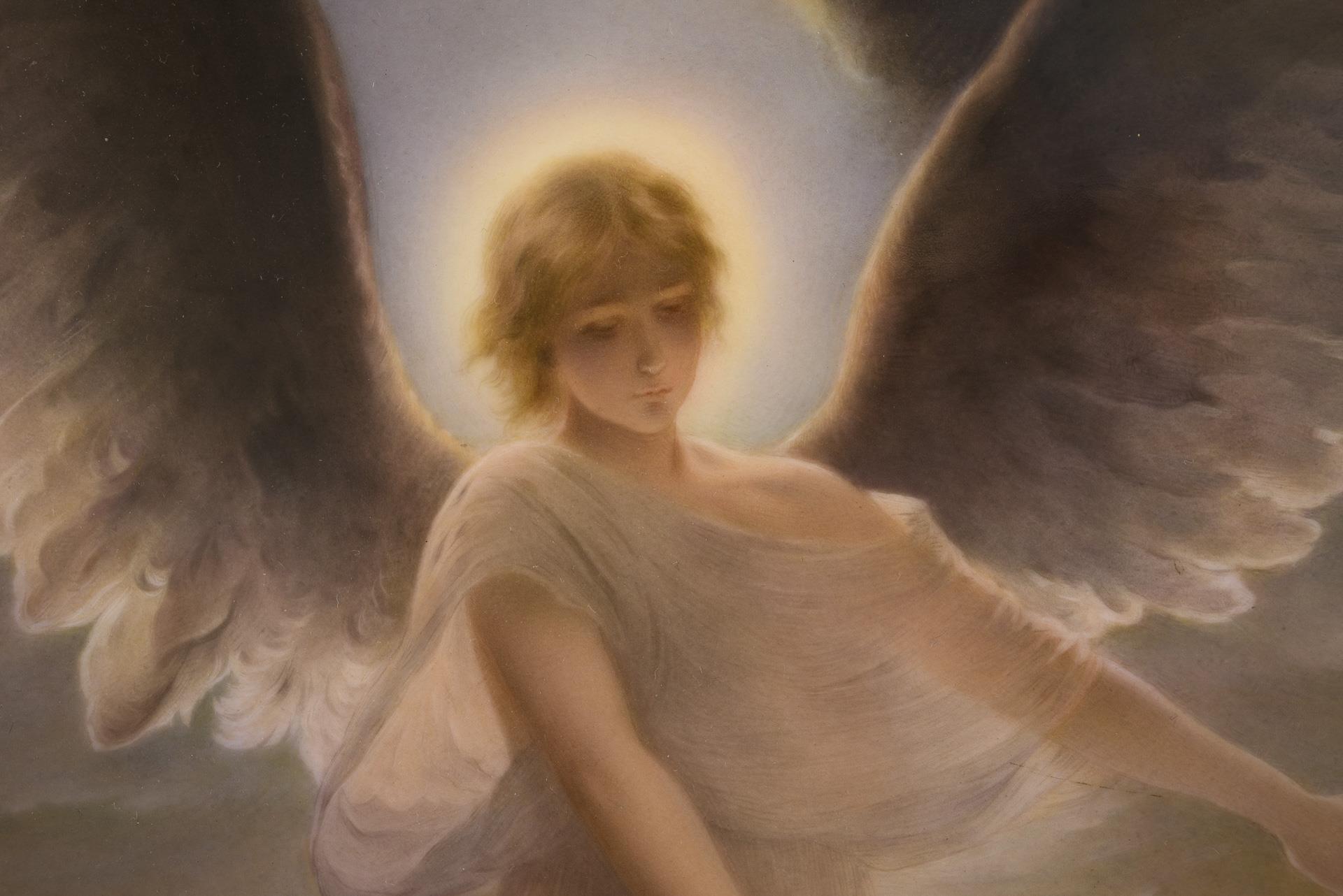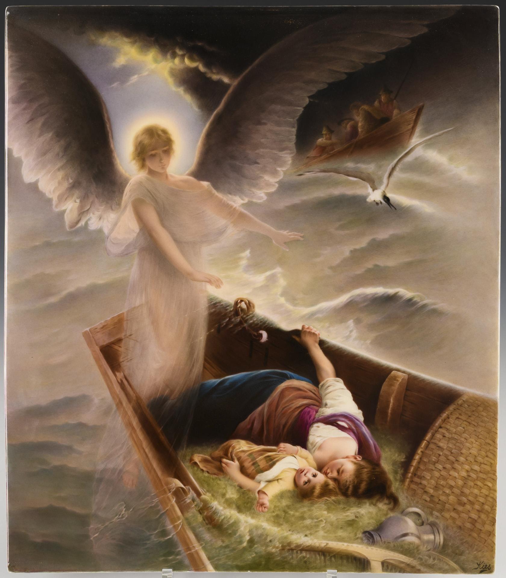 Porzellangemälde: Schutzengel im Boot. KPM Berlin.