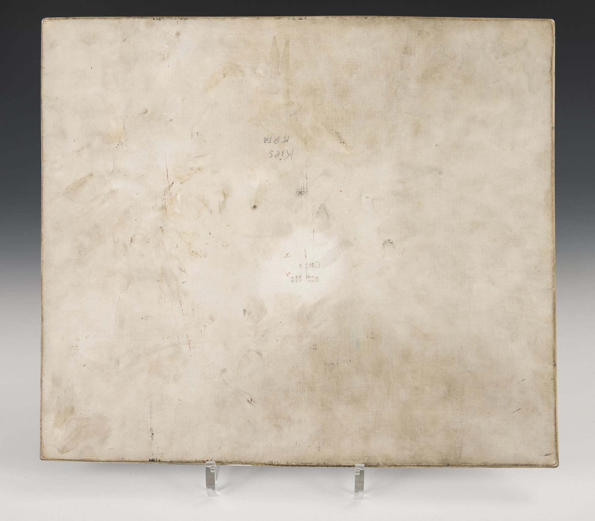 Polychrome Malerei. 34,5 x 29,5 cm, im schwarzen Holzrahmen (46,5 x 42 cm).