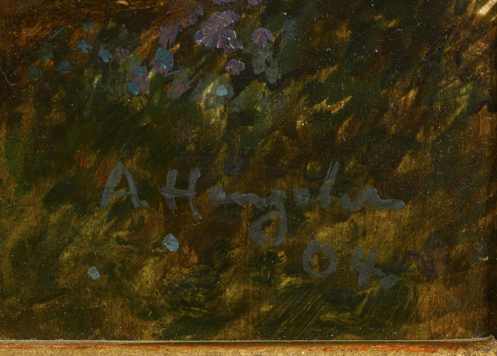 Öl/Holz. Rechts unten signiert. (19)04. 41 x 35,5 cm. Gerahmt: 54,5 x 49 cm (Goldrahmen).