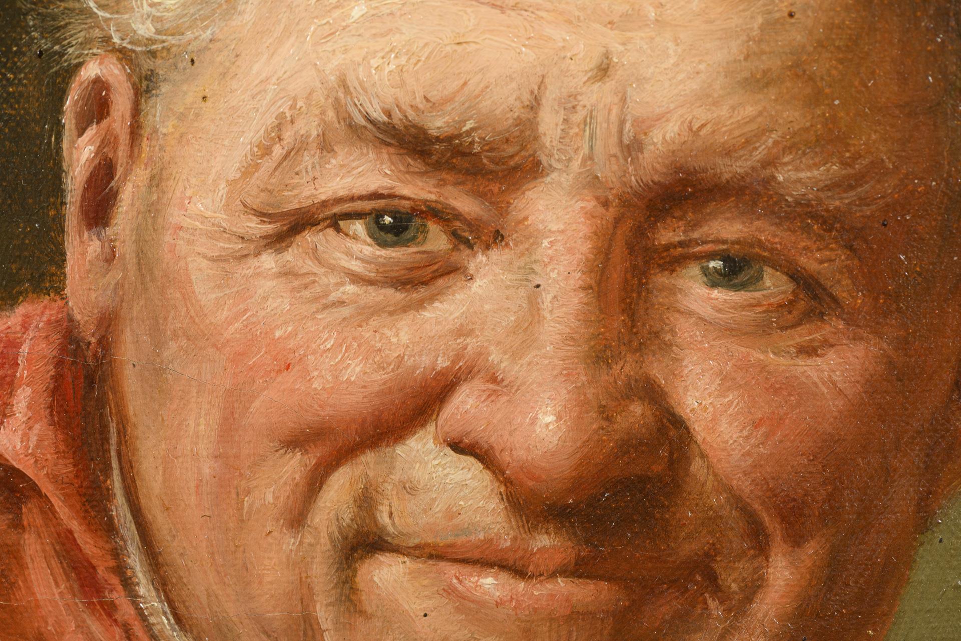 Porträt des hohen Würdenträgers mit Weinglas an einem Tisch.