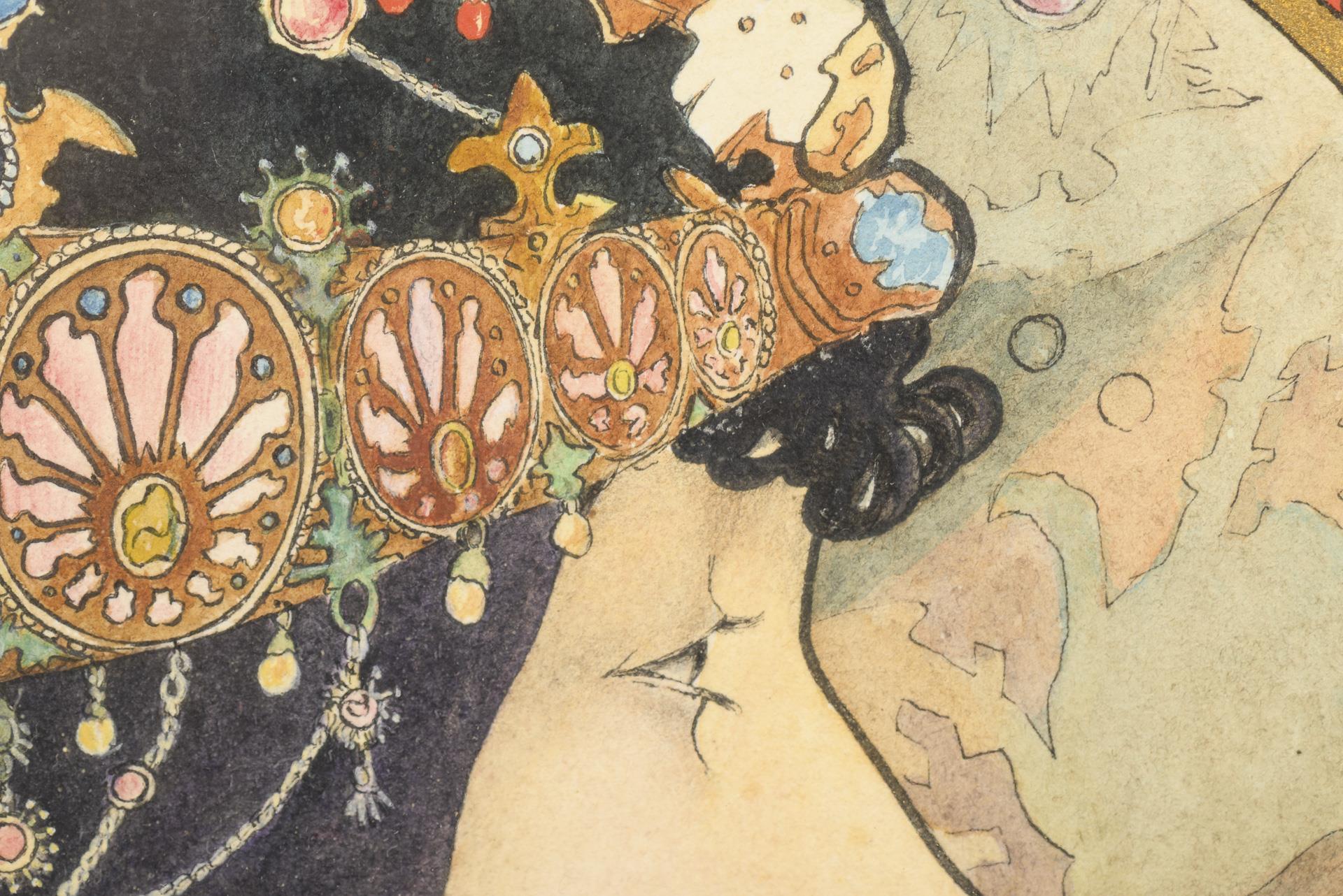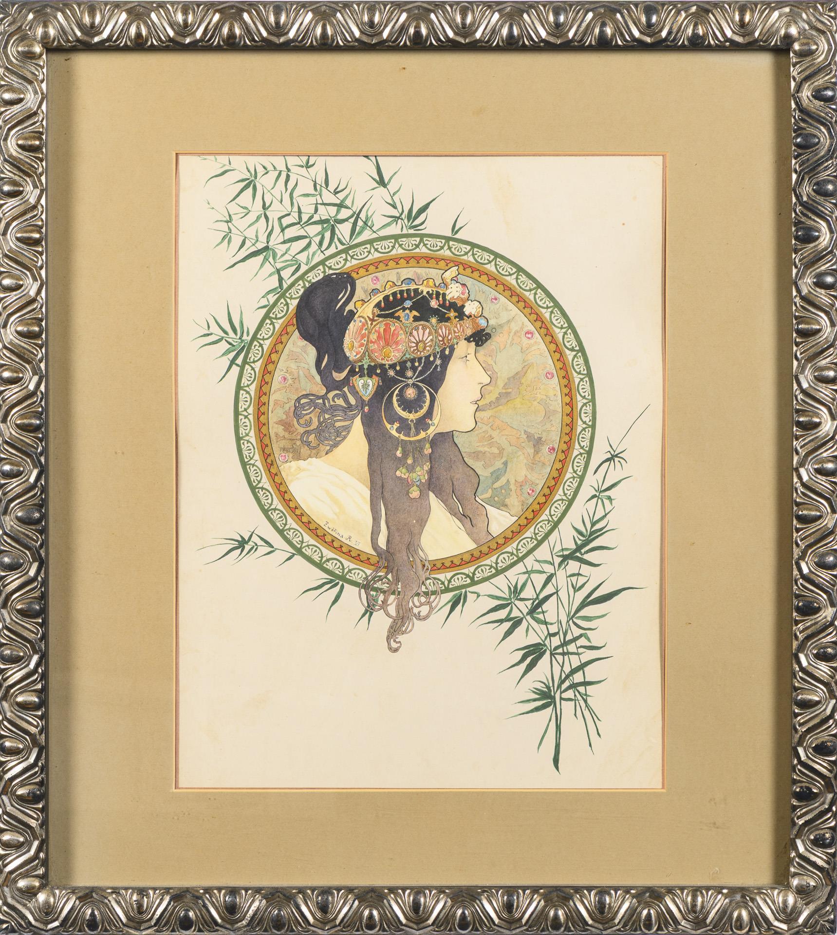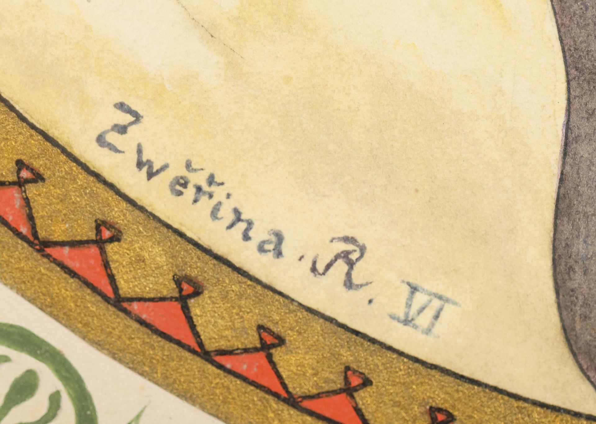 Aquarell, wohl über Lithografie. Links unten mit "Zwerina R. VI" signiert. Anfang 20. Jh. Passepartoutausschnitt 55,5 x 41 cm. Gerahmt & hinter Glas: 80,5 x 72,5 cm (Silberrahmen).