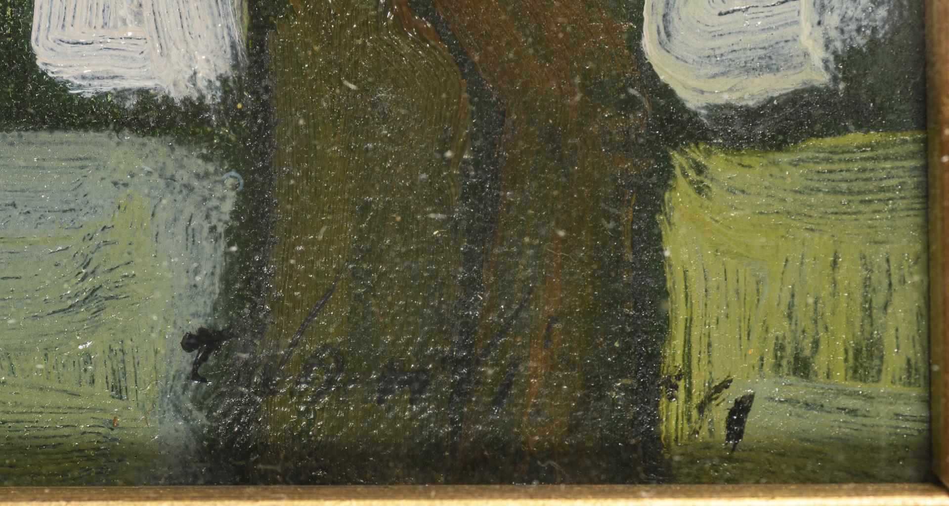 Öl/Leinwand. Rechts unten undeutlich signiert, verso undeutlich auf einem Klebezettel der Galleria Ferretti bezeichnet. 20. Jh. 50 x 60 cm. Gerahmt & hinter Glas: 73,5 x 82,5 cm (Goldrahmen).