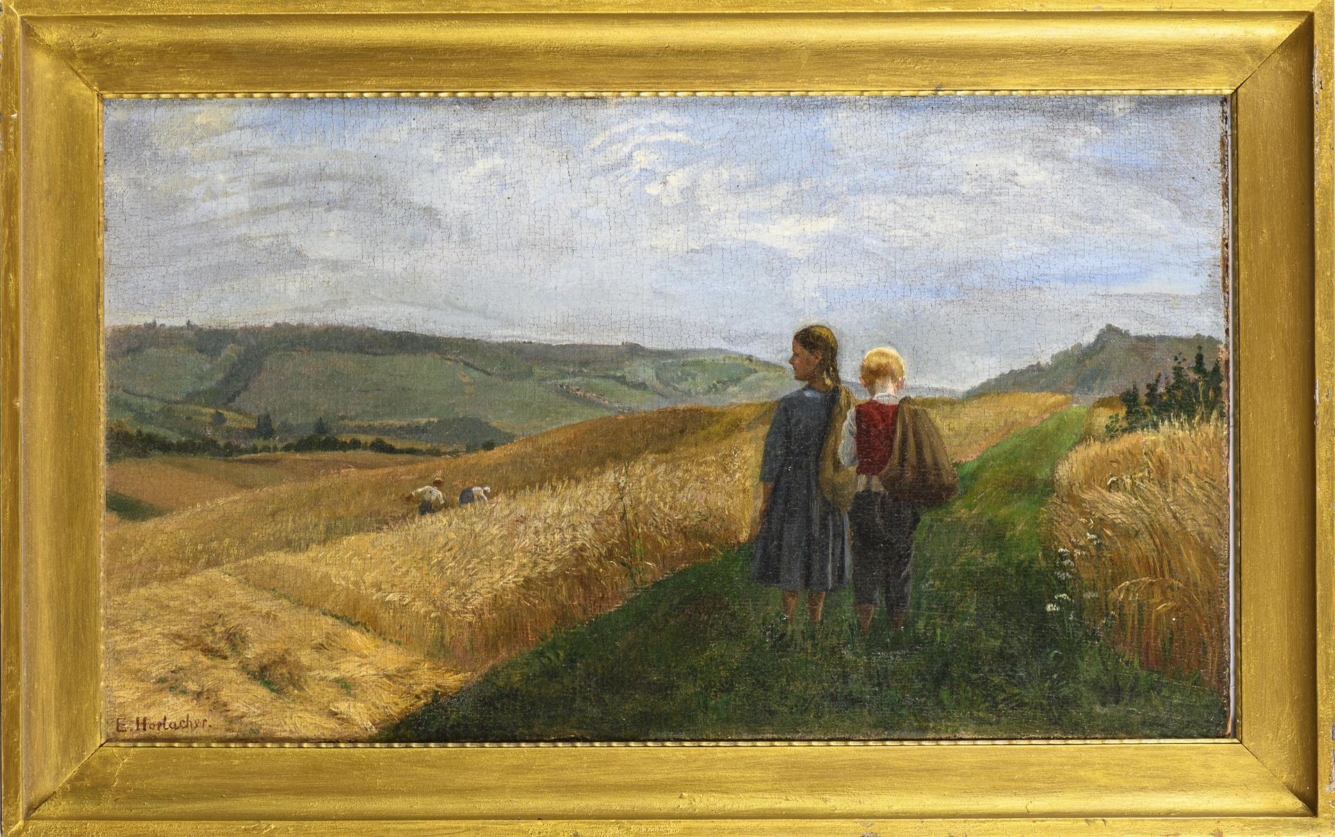 HORLACHER, Emma: Bauernszene mit Kindern am Feldrand.