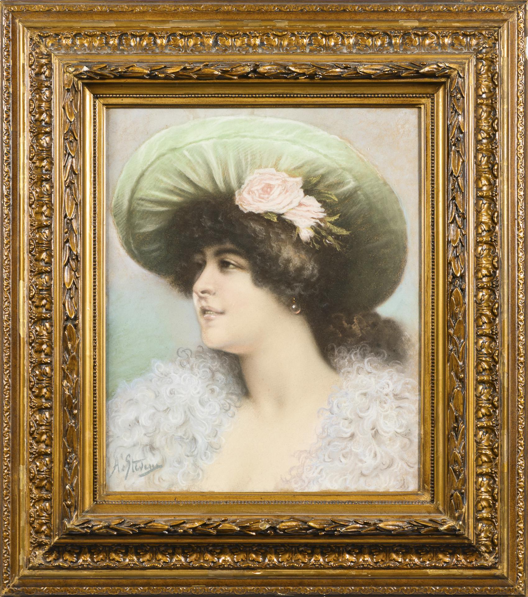Pastell. Links unten signiert. 52 x 43 cm. Gerahmt & hinter Glas: 84,5 x 75 cm (Goldstuckrahmen).
